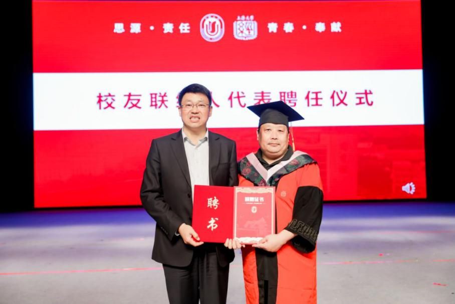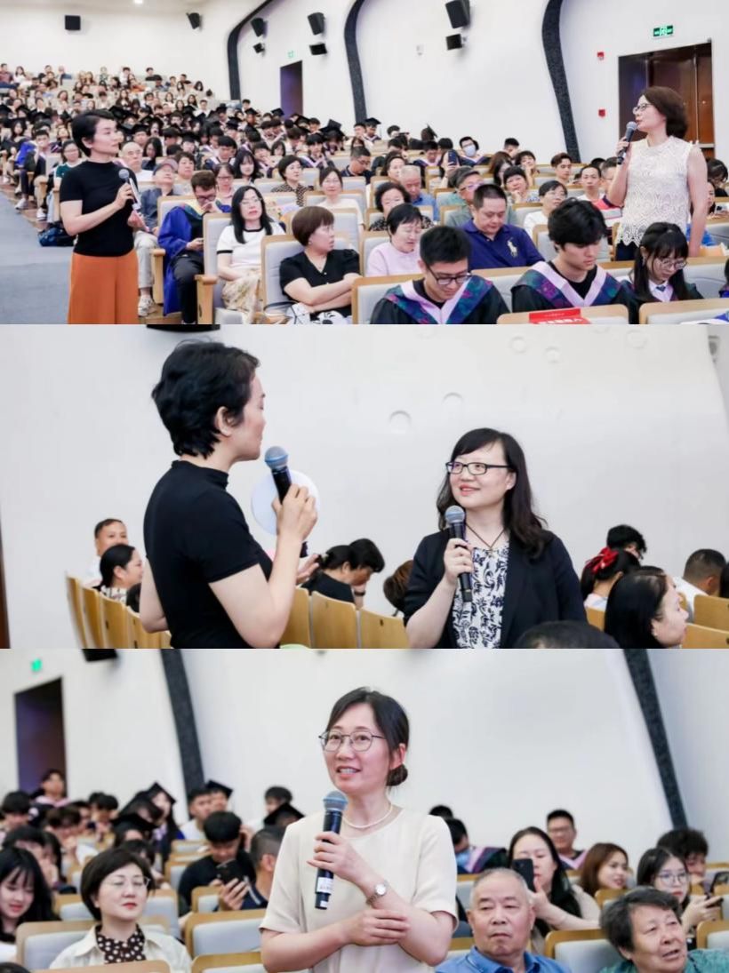 校友送祝福环节,大屏幕播放了来自2003届校友、中国银河证券上海分公司党委书记、总经理田旻,2013届校友、浦发银行牡丹江支行行长丁赟,1996届校友、犹他大学公共政策与政府学院研究员、上海启蝶服饰有限公司总经理黄文崴三位校友代表录制的祝福视频,祝福毕业生践行院训,前程似锦。