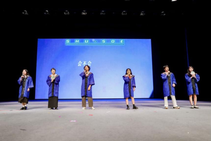 宣誓完毕,同学们又带来精彩纷呈的文艺表演,充分展示了他们的才华与风采,赢得了观众的阵阵掌声。研究生的表演不仅展现了学术上的成就,更体现了他们对艺术的热爱和追求。本科生的表演充满青春活力,展现了年轻一代的激情与梦想,传递出积极向上的精神风貌。留学生们的表演则融合了多元文化,令人耳目一新,体现了学院国际化的教育特色。