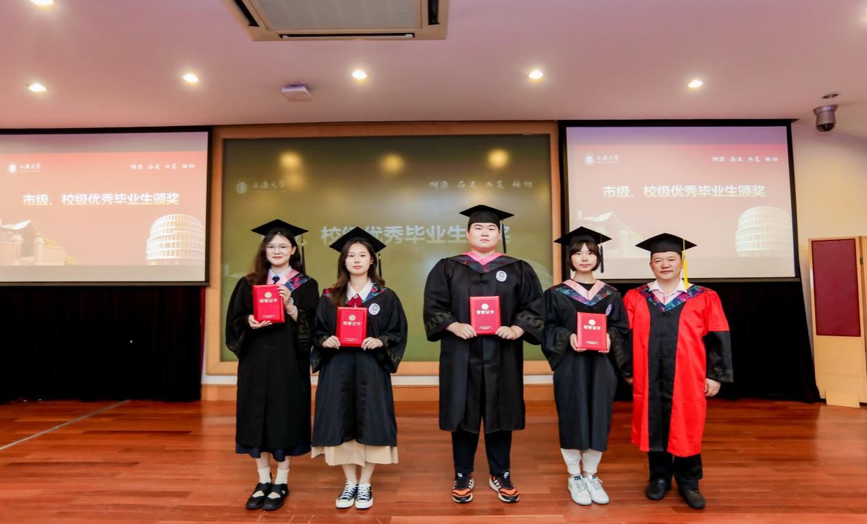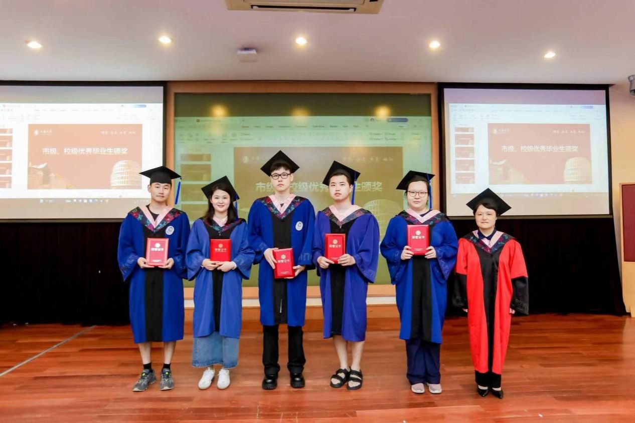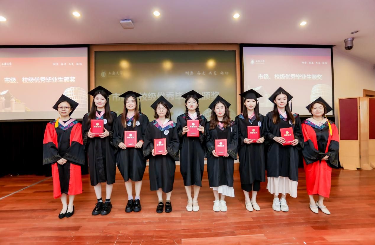 随后,吴蔚书记和尚新院长为上海市优秀毕业生们颁发证书;黄欣老师、李晓媛老师、马拯老师和于梅欣老师为AC米兰官方网站优秀毕业生们颁发证书。毕业生们从颁奖嘉宾手中接过的奖状,不仅是一份荣誉、辛勤学习的回报,更是承载了学校、学院、导师的殷切希望,希望他们谨记那份被褒奖的努力,在未来的道路上不忘初心,砥砺前行,向着更广阔的人生舞台接续奋斗。