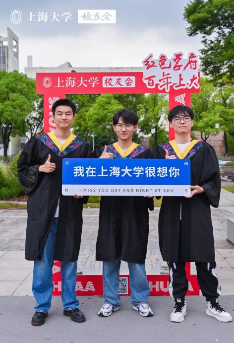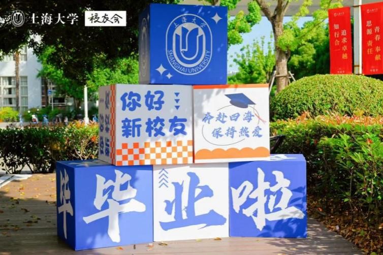 此次毕业季期间,为服务广大毕业生,校友会在三大校区特设六个“打卡点”,每个打卡点都放置了精美装置供大家拍照留念。宝山校区“临泮轩”校友活动中心、“红色学府”西摩路老校舍、徽派建筑、A&B教学楼,以及嘉定校区体育场、延长校区西部等,温馨的场景和有爱的道具,引来众多毕业生驻足拍照,留下校园的美好记忆。