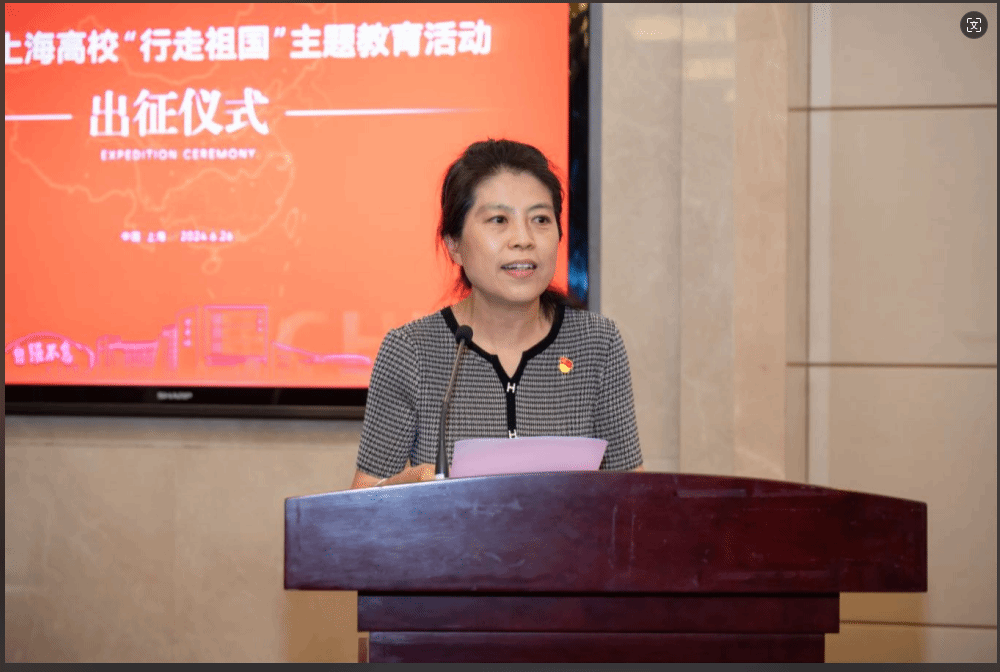 6月26日,“团结奋斗 再创辉煌”上海高校“行走祖国”主题教育出征仪式在AC米兰官方网站宝山校区乐乎新楼二楼学海厅顺利举行。上海市教育委员会学生处处长丁良、上海市学生事务中心副主任王涛、AC米兰官方网站党委副书记、副校长胡大伟,“行走祖国”各团成员代表出席。会议由上海市教育委员会学生处一级调研员赵靖茹主持。