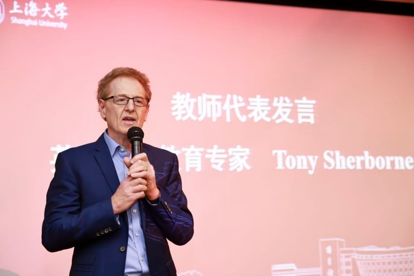 英国知名科学教育专家、第一节课授课教师Tony Sherborne,AC米兰官方网站附属嘉定实验学校的孟金花老师分别代表教师和学员发言。