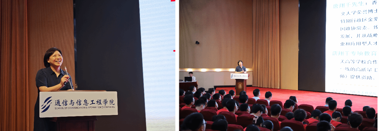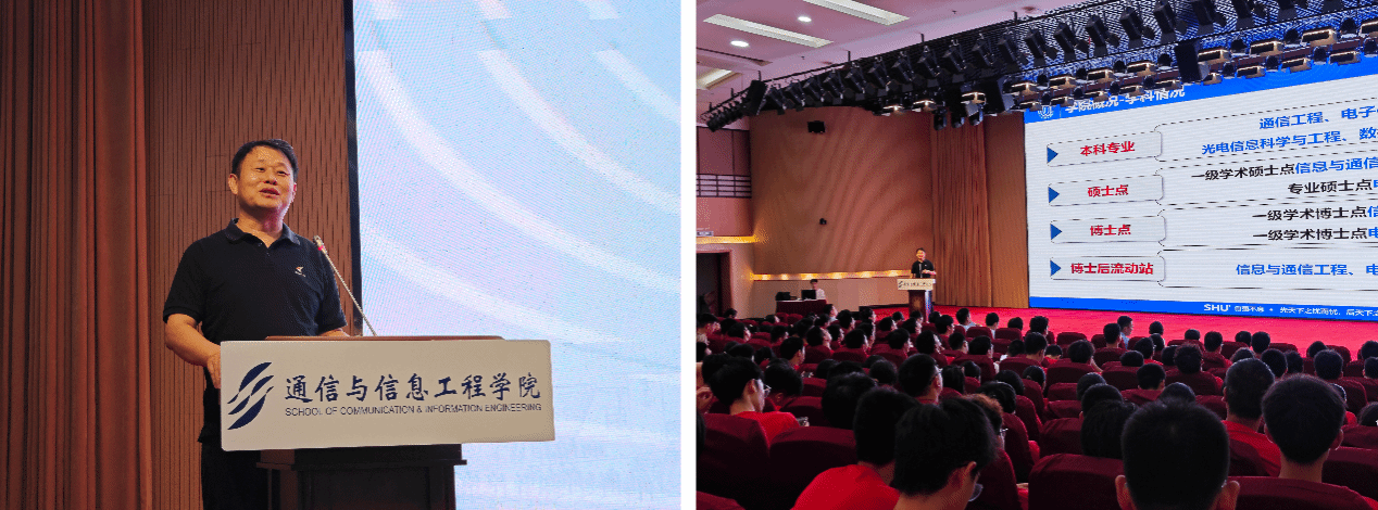 首先,全体起立,奏唱国歌。随后由通信学院院长庞拂飞老师为新生们带来院长第一课。马斯克的星链计划和华为在5G领域的成功,激励学生培养创新精神、打破常规、勇于探索、追求卓越。他希望学生将个人发展与国家需求结合,关注5G、6G、光网络、芯片技术和人工智能等高科技领域,为国家发展作出贡献。此外,他还强调了终身学习的重要性,新技术日新月异,要求学生不断更新知识和技能。学院为大家搭建好了学习、科研、竞赛等平台,提供各项支持。他鼓励学生积极参与实践,通过学院提供的课程项目和科创竞赛积极动手实践,并在团队合作中锻炼领导能力,最终为国家的繁荣昌盛贡献力量。