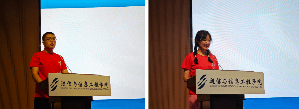 通信2班的顾翔文同学和理工III类3班的殷诗画同学作为新生代表发言。他们在发言中满怀憧憬地展望了大学生活,真挚感谢导生与老师的指导,承诺专注学业、投身实践并强化团队合作,在这四年里不断突破自我,追求梦想。