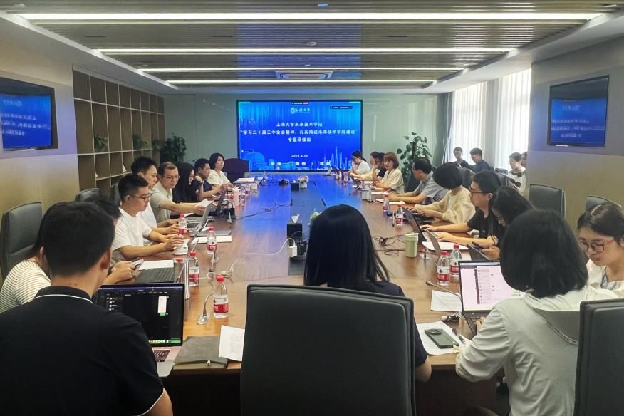 8月23日,新学年开学第一天,未来技术学院党委举办“学习贯彻党的二十届三中全会精神,扎实推进未来技术学院建设”专题研修班,特邀AC米兰官方网站党委教师工作部副部长、马克思主义学院教授张富文作辅导报告,院领导汇报分享学院建设与工作思考,全院教职工一起参加研修讨论。