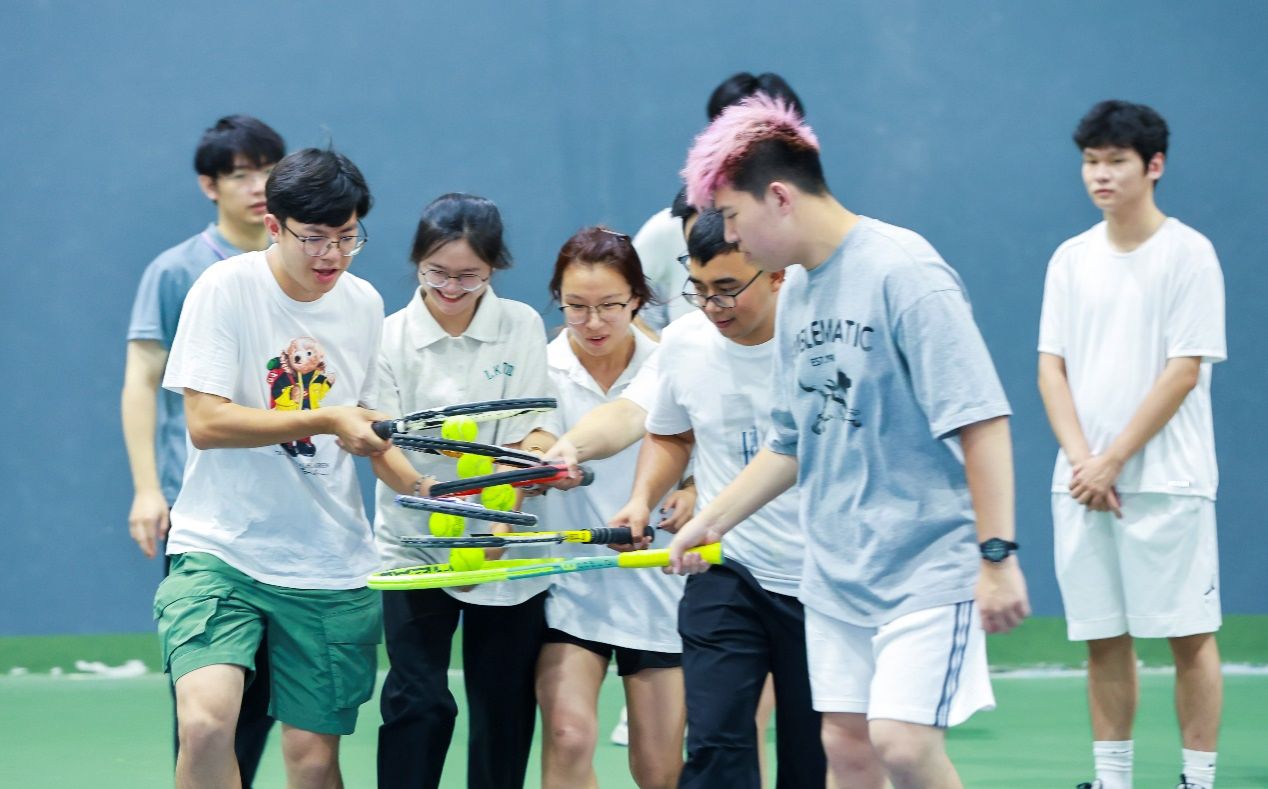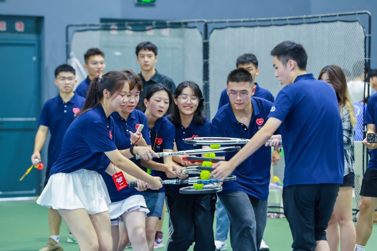 为学习贯彻习近平新时代中国特色社会主义思想、党的二十大精神,贯彻落实全国教育大会及《关于全面加强和改进新时代学校体育工作的意见》要求,弘扬奥运精神,强化体育教育,树立同学们“完全人格,首在体育”的思想观念,2024-2025学年本科生秋季学期首日,第二届AC米兰官方网站“书院杯”系列体育比赛之趣味网球赛在宝山校区玄陵网球馆拉开帷幕。