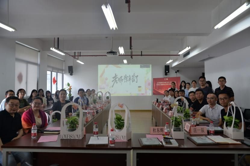 在班主任聘任仪式上,文学院党委书记陆甦颖为2024级研究生班主任刘慧宽、陈冠豪、林威杰、汪一辰、杜东辉、张庆翔颁发聘书。在第40个教师节到来之际,与会学生代表们也为在场教师送上教师节礼物,表达感恩之情,共同庆祝教师节。