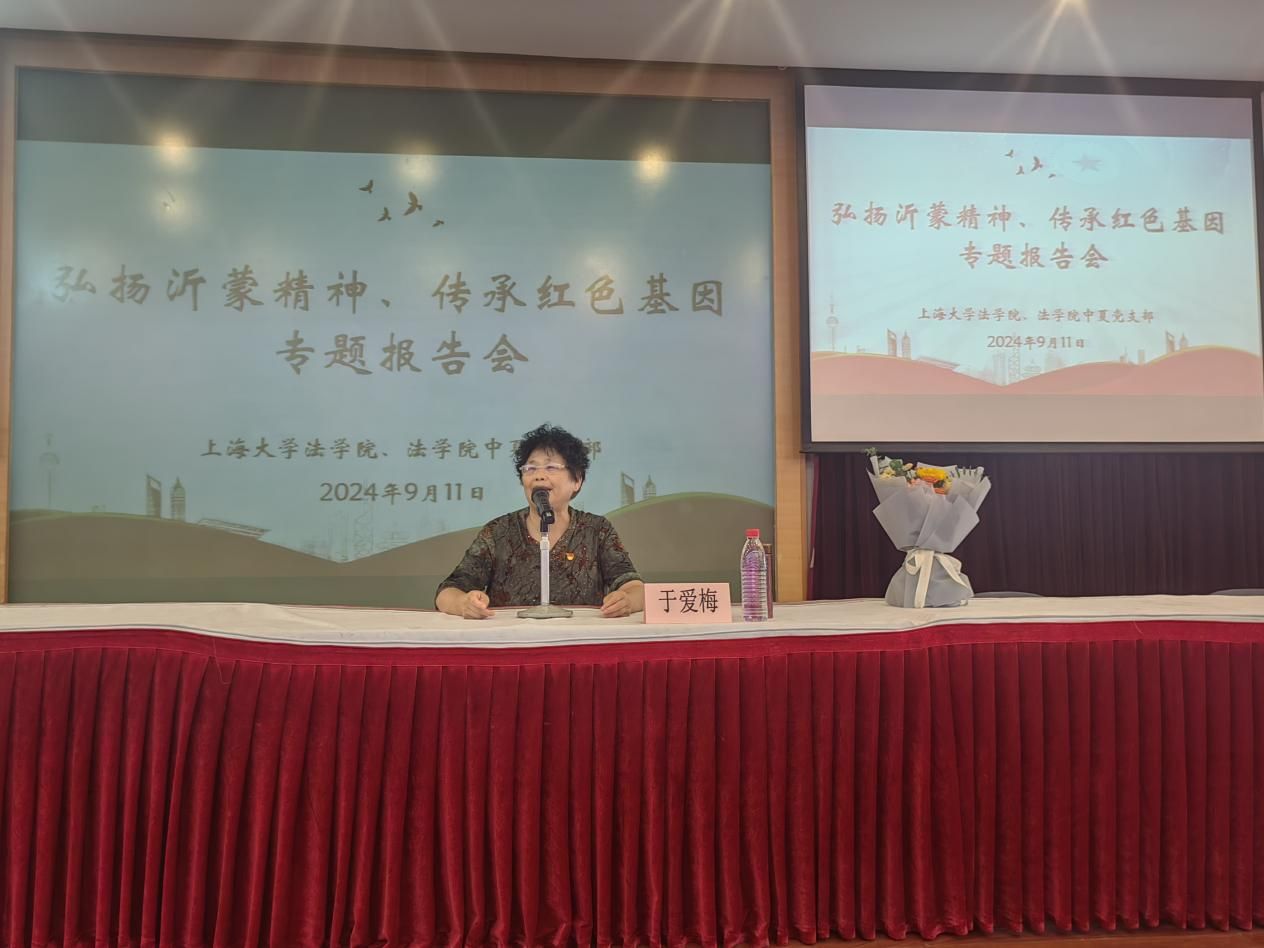 习近平总书记视察山东时指出,要保护和运用好红色资源,大力弘扬沂蒙精神,推动红色基因代代相传。为了积极贯彻落实党中央号召、深入学习和弘扬沂蒙精神,9月11日下午,AC米兰官方网站法学院、法学院中夏党支部特别邀请沂蒙精神传承促进会会长、全国最美拥军人物、中国好人、山东省劳动模范于爱梅老师带来“弘扬沂蒙精神,传承红色基因”专题报告,临沂市政府办公室四级调研员、机关党委副书记李景昊,来自法学院、材料学院、环化学院、生命学院、上大附小等单位师生近200人参加了报告会。