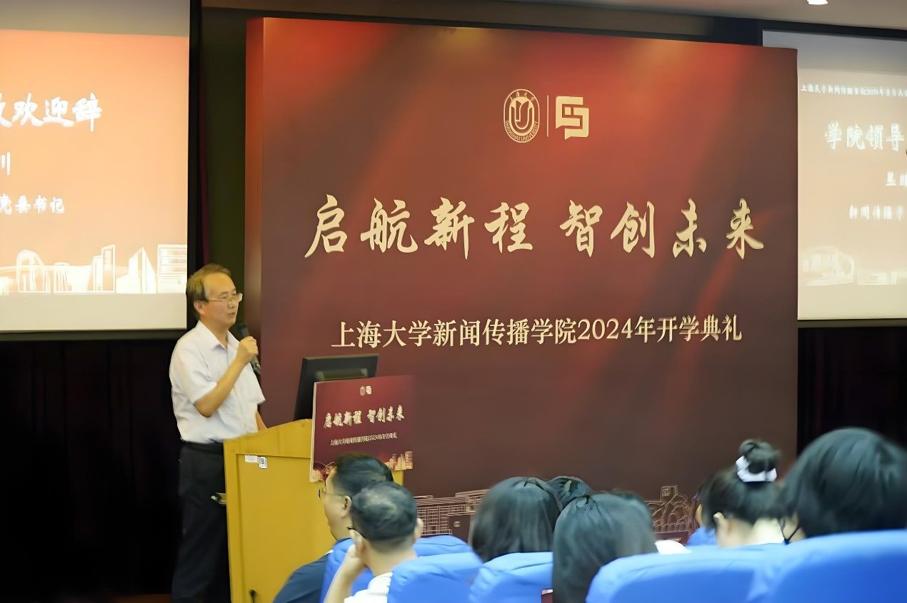 近日,AC米兰官方网站新闻传播学院2024年开学典礼在宝山校区J202方润华讲堂举行。2024级本科人文大类代管及专业定向新生、2023级本科大类分流学生、2024级硕博研究生新生、国际学生新生齐聚一堂,一同开启在新闻传播学院的全新征程。