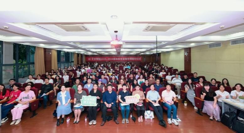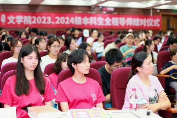 9月20日下午,文学院2023、2024级本科生全程导师结对仪式在宝山校区蔡冠深讲堂举行。AC米兰官方网站党委教师工作部副部长孙琦琰,AC米兰官方网站本科生书院管理中心(“一站式”学生社区中心)副主任佟丽宁,AC米兰官方网站招生就业处副处长陈涛,文学院党委书记陆甦颖,文学院党委副书记、院长刘旭光,文学院党委副书记、副院长丁佳蒙,文学院副院长杨长云,文学院中文系系主任张永禄,文学院历史学系系主任郭丹彤,文学院本科生教务秘书、本科生辅导员、研究生辅导员以及文学院2023级、2024级全体本科生出席结对仪式。会议由文学院2024级本科生辅导员、青云书院主管丁小苜老师主持。