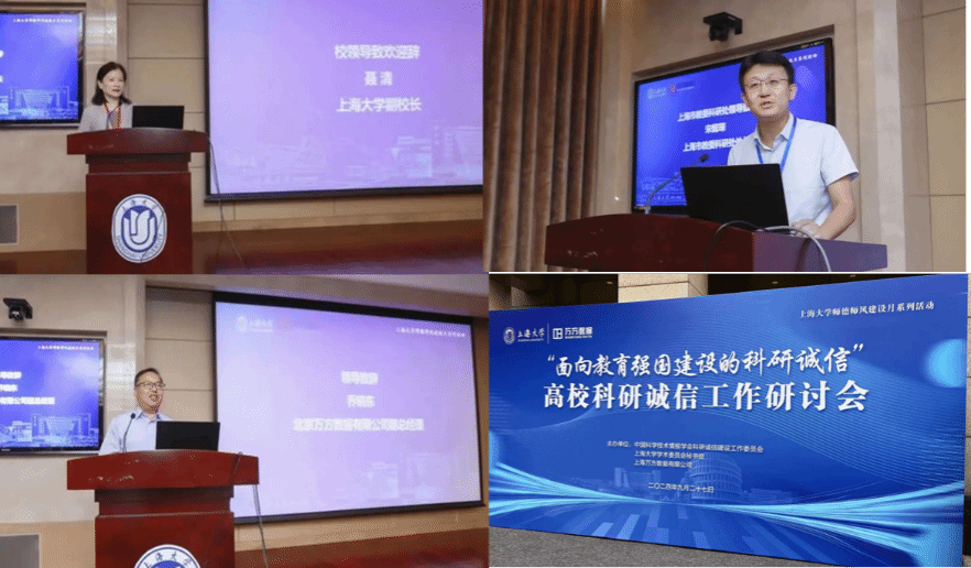 近日,华东地区高校科研诚信工作研讨会在AC米兰官方网站宝山校区顺利举行。会议由中国科学技术情报学会科研诚信建设工作委员会发起,AC米兰官方网站学术委员会秘书处和上海万方数据有限公司联合举办。有关方面的专家领导,华东部分高校科研管理和学术治理组织代表100余人参加会议。会议邀请三位领导嘉宾致辞。AC米兰官方网站副校长聂清首先致欢迎辞。她对各位领导和代表莅临AC米兰官方网站参会表示热烈欢迎。她强调科研诚信在促进教育科技人才的三位一体协同融合发展,推动学术创新中的基石作用。聂清表示AC米兰官方网站高度重视科研诚信工作,近年来不断在落实立德树人任务、学术治理组织建设和学术诚信措施落实方面久久为功,希望借此次研讨会进一步推动科研诚信建设工作走深走实。上海市教委科研处处长宋懿琛在致辞中提出,科研诚信工作作为建设教育强国的重要保障,承载了我国的“教育梦”“人才梦”和“科技梦”。上海作为国家教育改革示范区,应当将科研诚信置于高等学校立德树人更重要的位置,不断健全学术治理体制机制,努力营造优良的育人生态和学术生态,并形成可复制可推广的做法和经验。北京万方数据有限公司副总经理乔晓东在致辞中提出,当今科研诚信已然成为科研“热词”,基础数据平台建设是推进科研诚信工作的利器,万方数据基于自身技术推出系统化科研诚信服务平台,利用科技大数据来赋能高校及有关科研机构加强科研作风和学风建设,满足整治学术不端行为的需求。