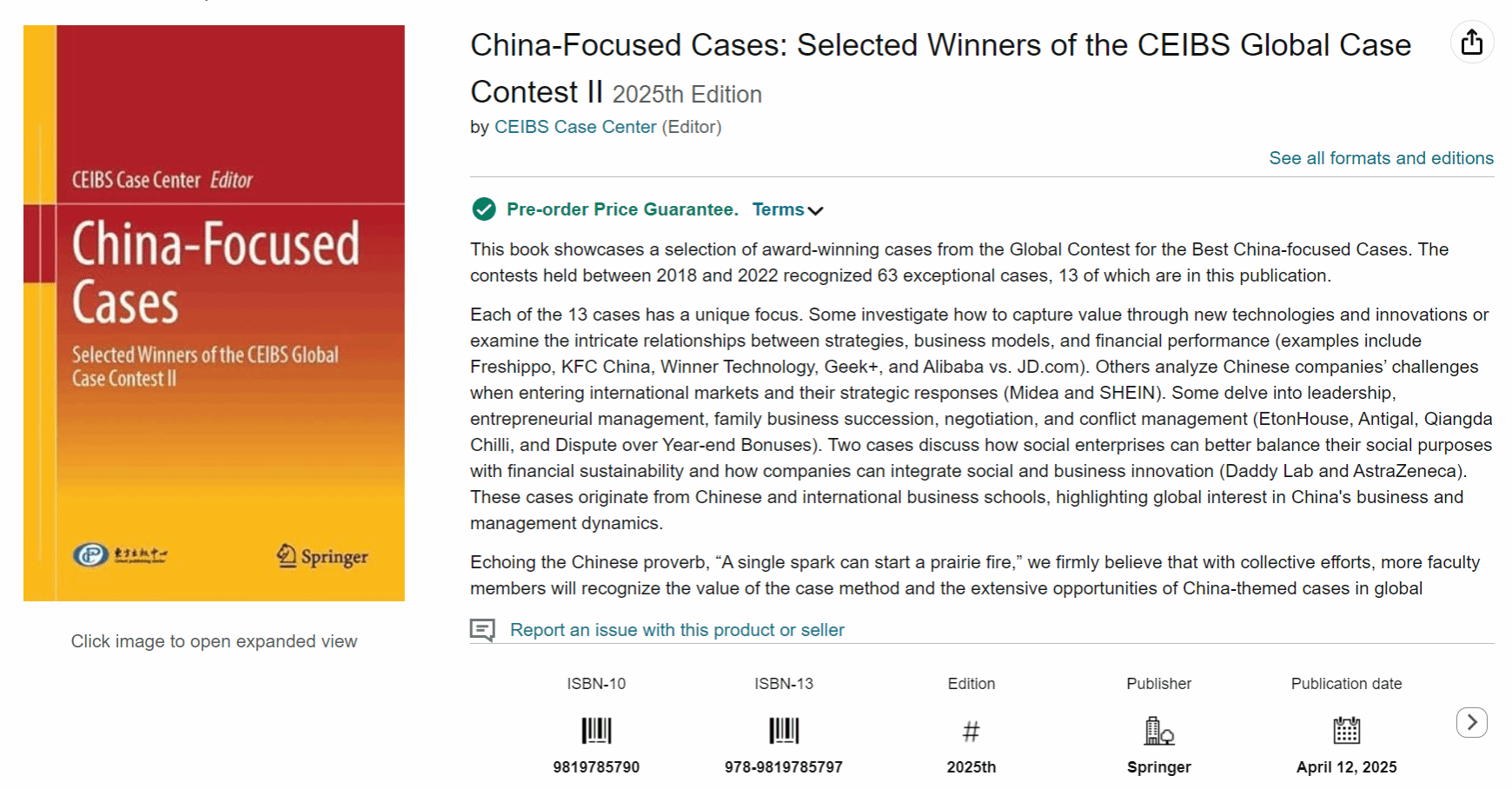 同时,该案例还入选了《中国工商管理国际最佳案例获奖精选第2辑(英文版)》(China-Focused Cases: Selected Winners of the CEIBS Global Case Contest II),这一系列精选汇编旨在向全球读者展示中国管理实践中的优秀案例研究成果。作为入选案例,本案例将为全球管理学者、管理者和企业家等提供有价值的参考和启示,进一步推动中国特色工商管理学自主知识体系构建与国际影响力。
