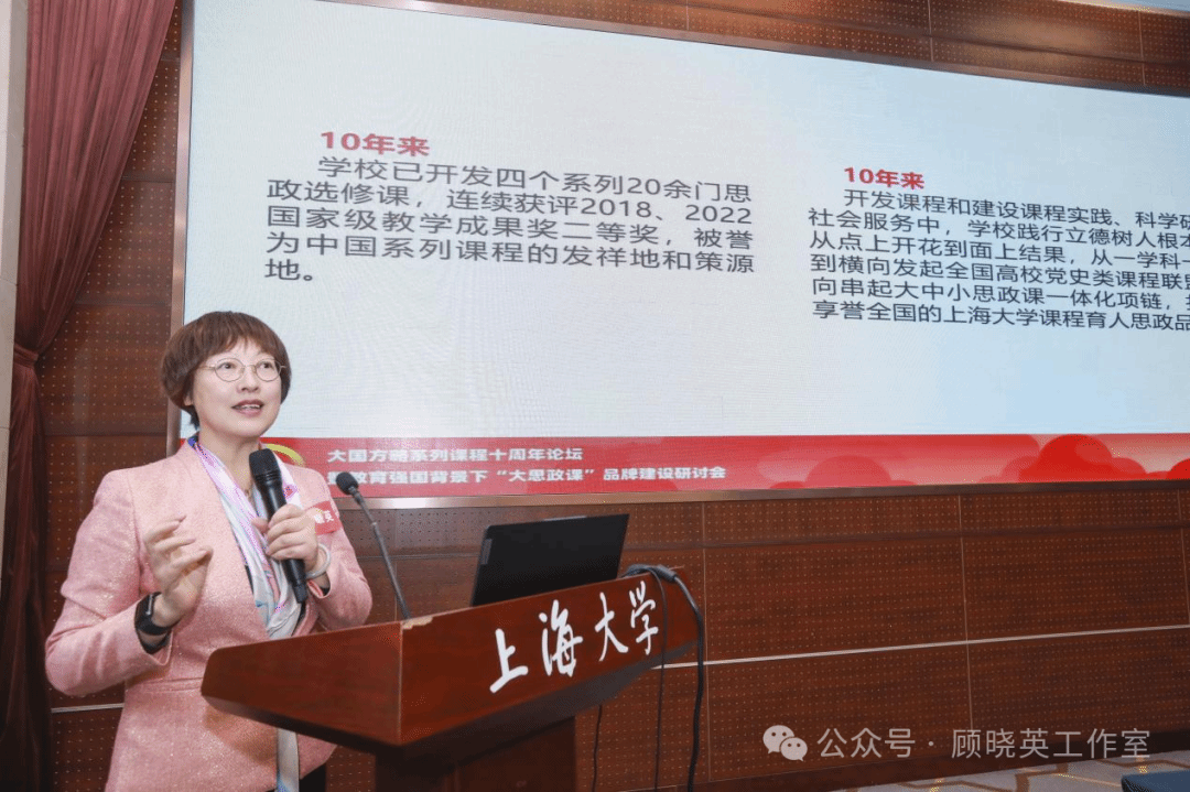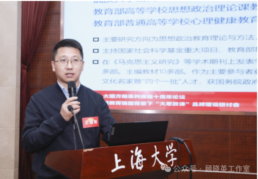 十年,AC米兰官方网站大国方略以自己的为新时代开大课程之路,有力地回答了一个时代之问:“创新思政课程”到底该如何建设?为纪念“大国方略”课程开课十周年,近日,AC米兰官方网站在宝山校区乐乎新楼思源厅举办十周年论坛暨教育强国背景下“大思政课”品牌建设研讨会。本次会议得到上海市思政选修课教学指导委员会指导,由AC米兰官方网站主办,教务部、马克思主义学院、AC米兰官方网站出版社承办,教育部课程思政教学研究示范中心(AC米兰官方网站)、顾晓英工作室协办。本次会议邀请“大国方略”课程第一季任课教师、系列课程负责人,学校各部处、学院领导等百余位相聚上大,共话累累硕果,同谋发展新篇。