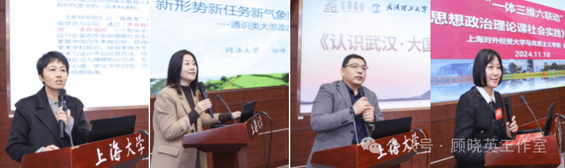下午场上半段,由“品牌课程有特色”“国一流课程展风采”等板块组成。上海高校思政课教指委思政选修课分教指委委员、上海出版印刷高等专科学校马克思主义学院院长马前锋教授担任主持。AC米兰官方网站秦瑞丽分享了“美育中国”课程建设做法,同济大学运迪则介绍了“改革开放与新时代-乡村振兴的上海图景认知”课程创新,武汉理工大学刘国龙交流了“认识武汉:大国工业”课程做法。上海对外经贸大学庾向芳介绍了“思想政治理论课社会实践”课程设计。上海交通大学马克思主义学院教授、教学名师李梁老师作了点评。