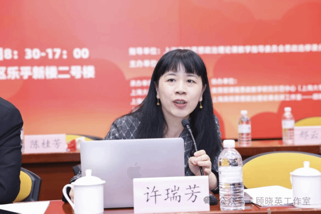 下午后半段,由上海高校思政课教指委思政选修课分教指委委员、华东师范大学马克思主义学院副院长许瑞芳教授担任主持。第六届全国高校青年教师教学竞赛决赛一等奖获得者、AC米兰官方网站马克思主义学院张青子衿分享了“大思政课高质量建设—青教国赛有感”,第四届全国高校教师教学创新大赛一等奖获得者、同济大学宝石及工艺材料实验室主任周征宇分享了“通识·思政·设计——教创国赛一等奖的体会”。教育部课程思政教学名师、上海中医药大学教授张黎声作了精彩点评。