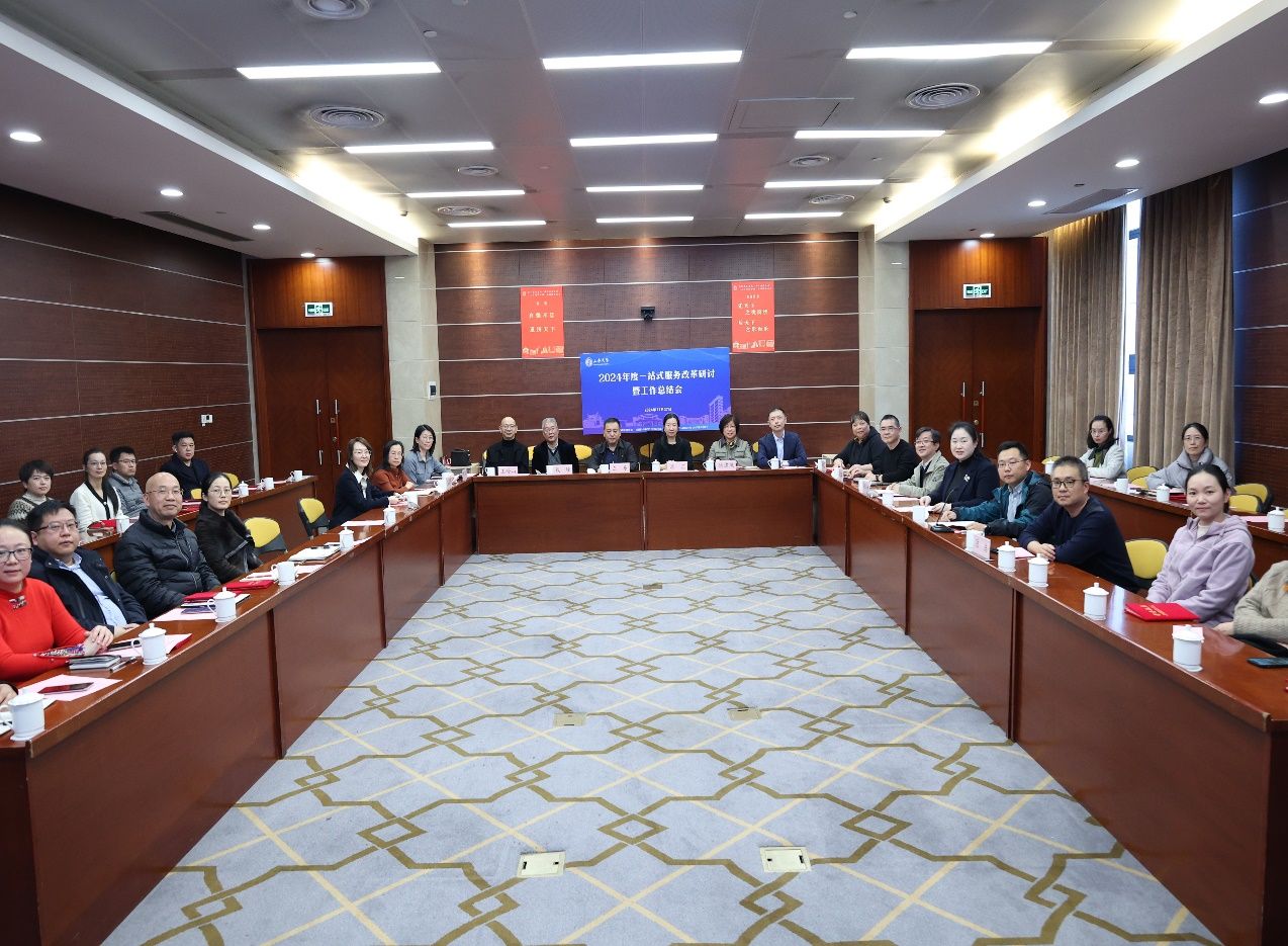 最后,沈艺作总结讲话。她指出一站式服务改革关乎学校内部治理效能的提升,涉及到用户体验、资源优化、文化塑造等层面,是学校组织管理和服务创新的重要趋势,也是适应快速变化的社会环境和师生需求的关键举措;她希望在数字化转型背景下,一站式服务中心要充分利用大数据等技术手段,对师生的办事需求、办事体验进行深入分析,以数据驱动决策,不断优化服务内容和流程。