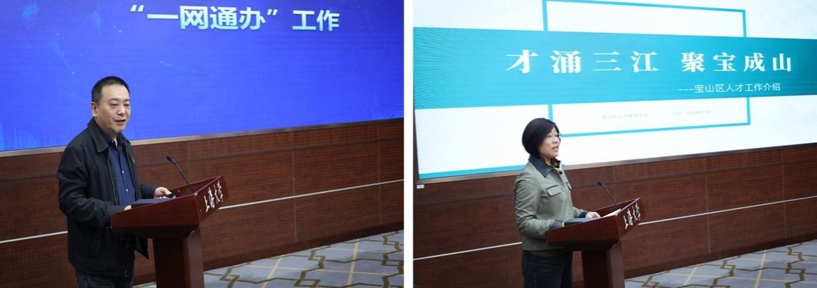 主旨发言阶段,王东分享了上海市“一网通办”的改革历程,介绍了“一网通办”如何以“业务流程革命性再造”为核心推进“一件事”改革以及“线上帮办”制度、服务“好差评”制度、“随申码”全方位应用等创新举措。钱建凤介绍了宝山区在人才工作上的重点举措和宝山科创人才港的建设,并着重探讨了宝山区与AC米兰官方网站在人才服务、学生就业等方面联动合作的新机制。