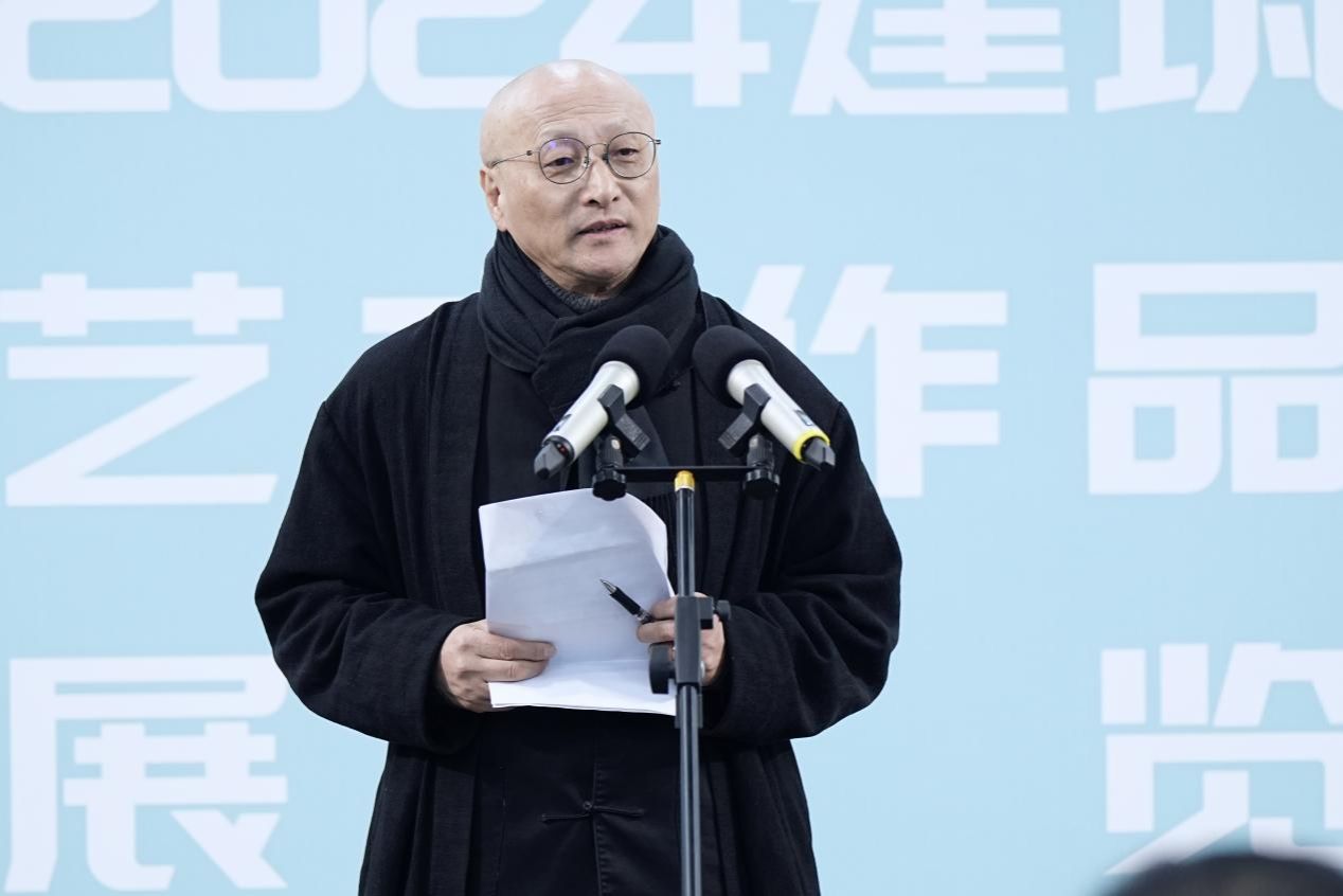 中央美术学院副院长、中国美协建筑艺委会主任吕品晶在致辞中指出,此次展览不仅是建筑艺术成果的展示,也是对建筑艺术发展方向的探讨。他提到建筑艺术在快速城市化中面临的机遇与挑战,并强调了保护传统文化与推动创新的重要性。他期待建筑师以艺术家视角创作,在行业低迷时把握机遇,借展览展示建筑艺术家在多领域文化的思考。