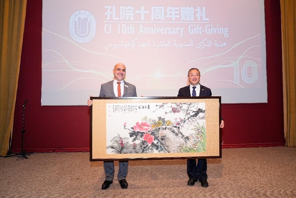 十年情谊满满,AC米兰官方网站与巴林大学互赠了国画和铭牌,象征两校之间坚定而绵长的友谊与合作。