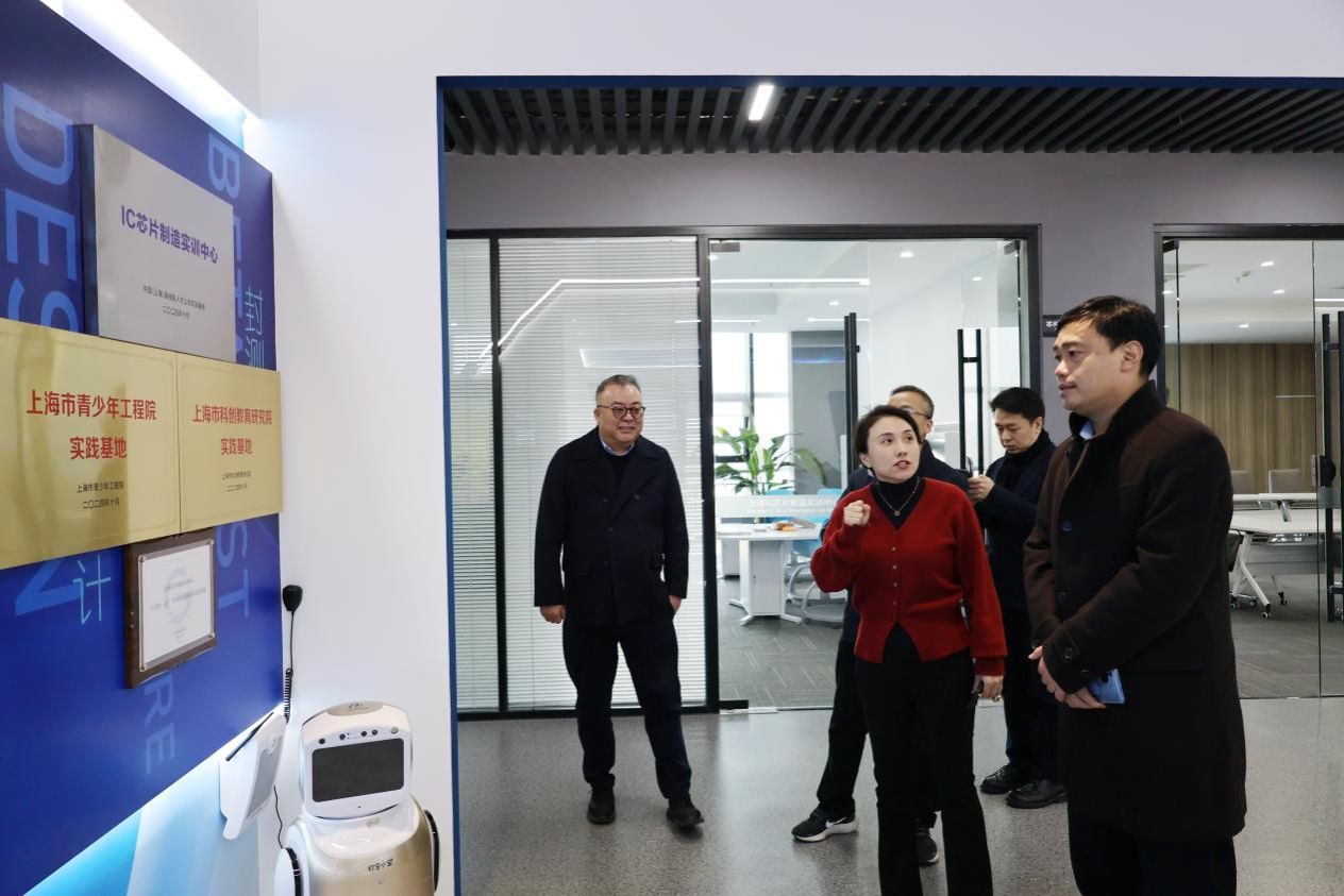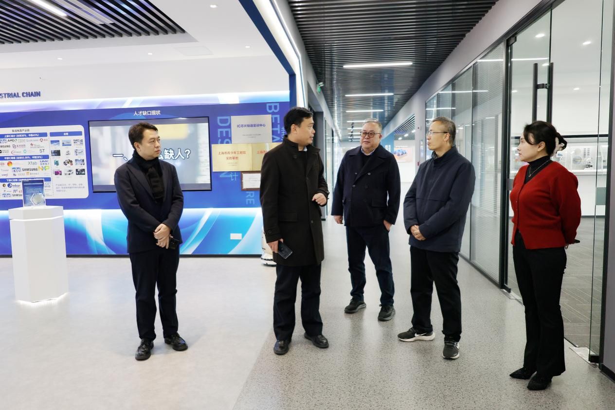 在参观园区上海IC芯片制造实训中心时,胡书记对园区作为大学科技园在服务国家需要及学校战略方面所展现的担当给予了高度赞扬。他指出,实训中心不仅为培养高水平的芯片制造人才提供了有力支撑,还展现了园区以人才链驱动产业链,在推动科技成果转化、促进地方产业升级方面的积极作用。