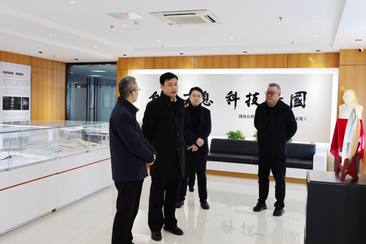 胡书记首先参观了钱伟长科学家精神传承中心,仔细阅览了钱伟长校长珍贵的手稿原件和创刊书籍。他提出,园区建设钱伟长科学家精神传承中心意义重大,不仅是作为弘扬科学家精神的重要平台,更是激励青年学子及创业者勇攀科学高峰的精神灯塔,学校将协调图书馆等相关机构全力支持,共同助力园区打造内容更加丰富的钱伟长科学家精神传承中心。
