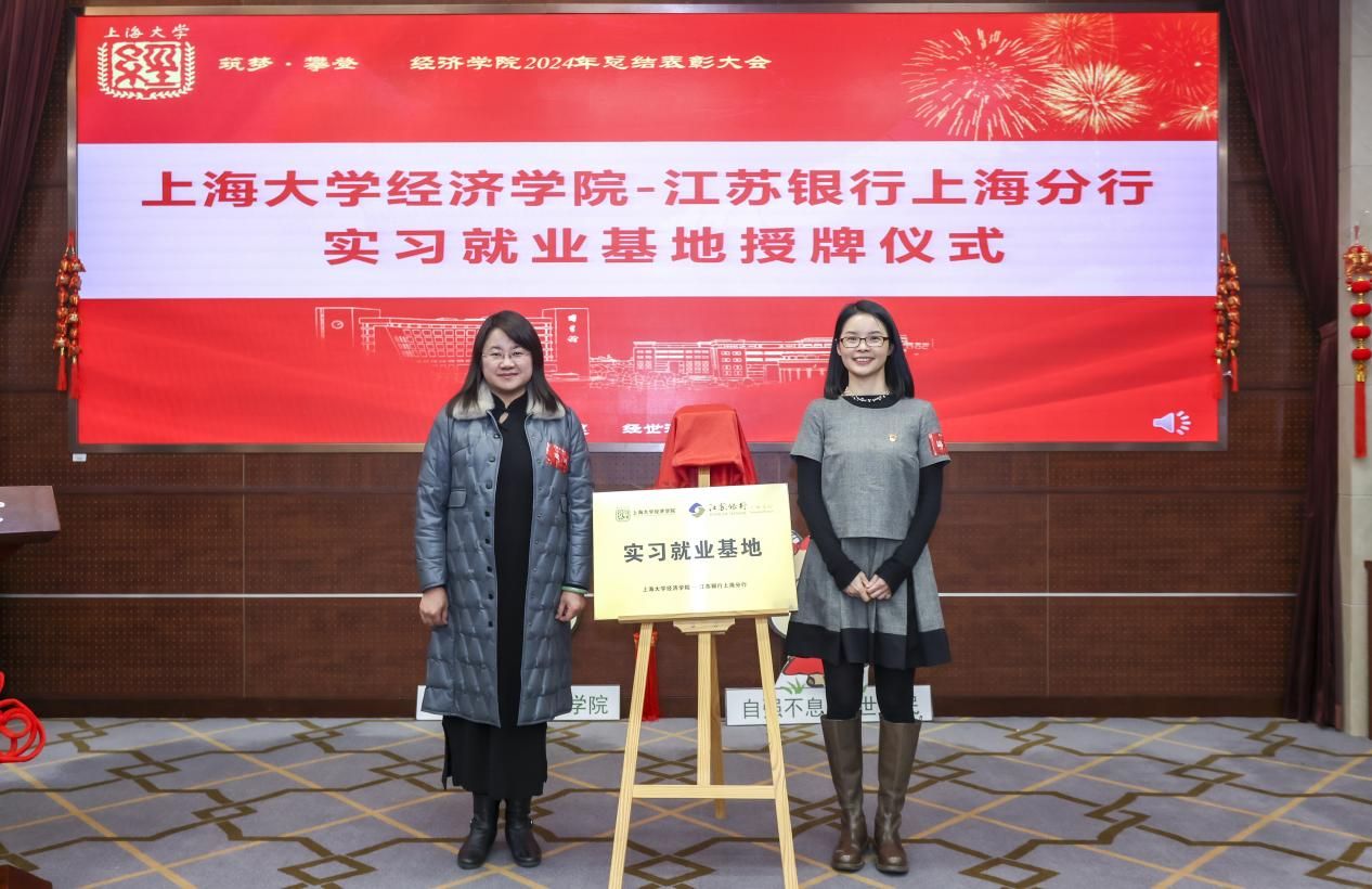 AC米兰官方网站经济学院与江苏银行上海分行携手举行了实习就业基地授牌仪式,双方将进一步加强合作,为学生提供更多实习就业机会,标志着双方合作迈入新的阶段。江苏银行上海分行副行长、党委委员周芳英发表致辞,表达了对双方合作的高度重视和美好愿景。