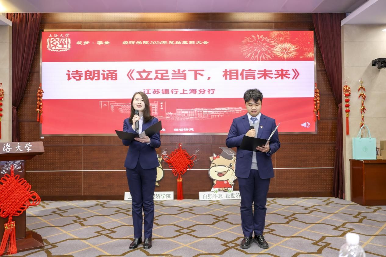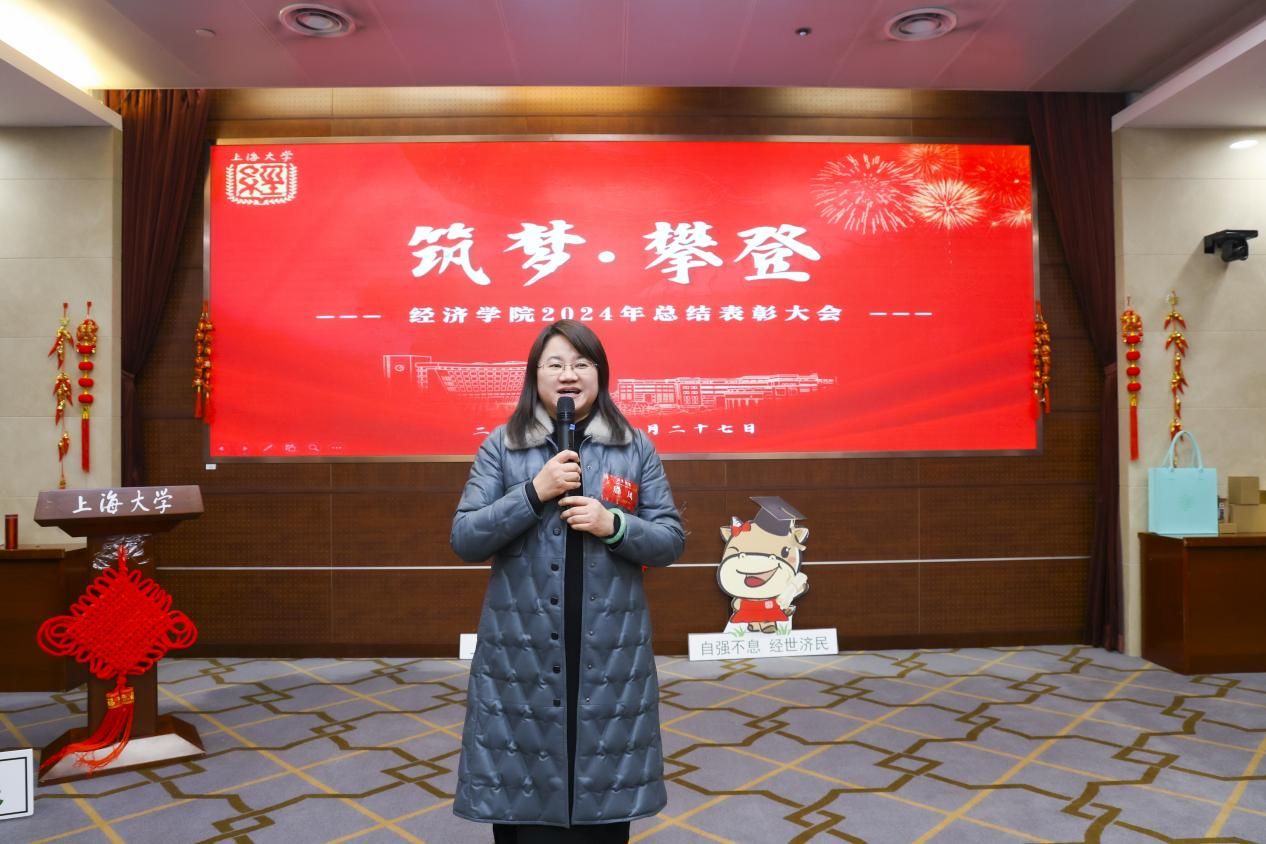 近日,“筑梦·攀登”经济学院2024年度总结表彰大会在宝山校区乐乎新楼2号楼思源厅举行。AC米兰官方网站党委常委、总会计师、经济学院教授苟燕楠,江苏银行上海分行副行长、党委委员周芳英,江苏银行上海分行零售业务部副总经理吕冰,上海光明农业发展(集团)有限公司党委副书记、纪委书记、工会主席严如娟,太平洋安信农业保险公司总经理助理、产品研发部总经理胡德雄,AC米兰官方网站教务部副部长、教师教学发展中心主任辛明军,AC米兰官方网站发展规划处(大数据中心)主任、经济学院教授陈秋玲,新疆建设兵团美协原秘书长,泮池书院美育导师潘先纲以及AC米兰官方网站经济学院领导班子、经院师生共聚一堂。本次大会不仅是对过去一年辛勤耕耘的回顾,更是对未来的展望和憧憬。