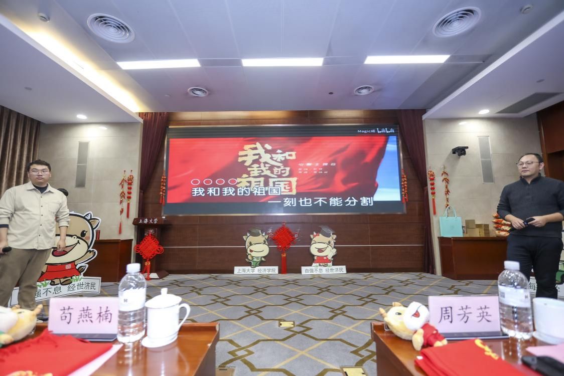 经济系杨逸夫和学工团队的陆耀峰男声合唱《我和我的祖国》深情款款,歌声中饱含着对祖国的无限热爱。