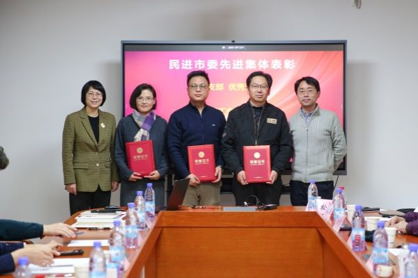 在先进表彰环节,蒋碧艳、桑晨奔、王玮、谭婷等向三个支部颁发了民进上海市委“示范支部”和“先进支部”荣誉证书、民进上海市委“宣传工作先进集体”和“公益群星”荣誉证书,向周丽昀、耿志杰颁发了“参政党理论研究和会史工作先进个人”和“宣传工作先进个人”荣誉证书。周丽昀主委宣读了2024年度民进上大委员会“参政议政工作先进个人”“宣传报道工作先进个人”及“社会服务工作先进个人”的表彰决定,与会领导向获奖个人颁发了荣誉证书。