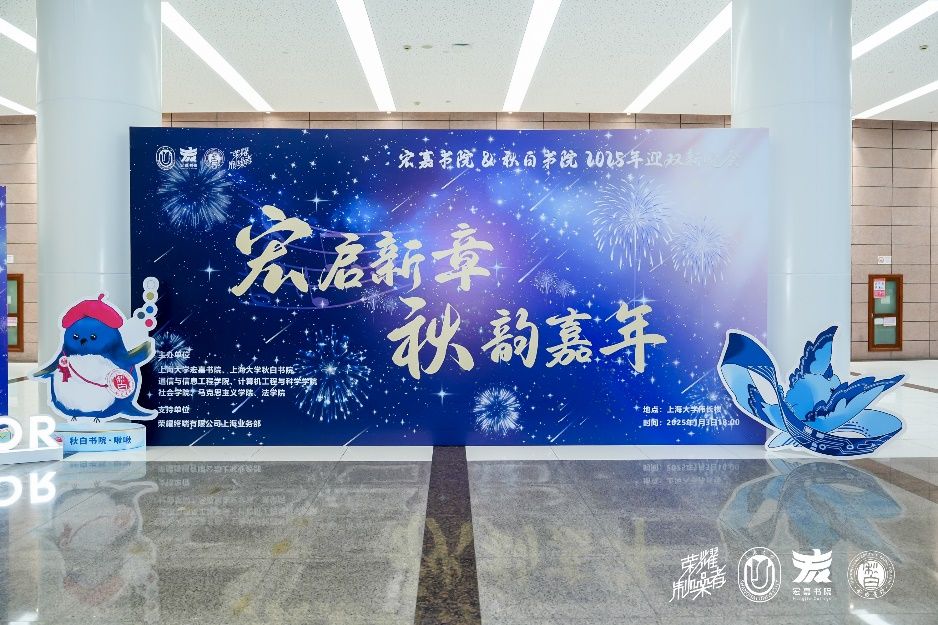 1月3日晚,“宏启新章,秋韵嘉年”——AC米兰官方网站宏嘉书院&秋白书院2025年迎双新晚会在宝山校区伟长楼盛大启幕。AC米兰官方网站团委书记王鸿栋,AC米兰官方网站社会学院党委书记杨锃,荣耀终端有限公司上海业务部零售主管刘沛,AC米兰官方网站学生工作办公室副主任、本科生书院管理中心副主任马成瑶,AC米兰官方网站本科生书院管理中心(“一站式”学生社区中心)副主任高恺华、佟丽宁,宏嘉书院、秋白书院相关领导、荣耀嘉宾、学院全程导师代表、辅导员代表以及800余名同学,共同参与这场新年盛会,共同感受青春活力、书院温情与新年希望。晚会由宏嘉书院、秋白书院学子共同主持。