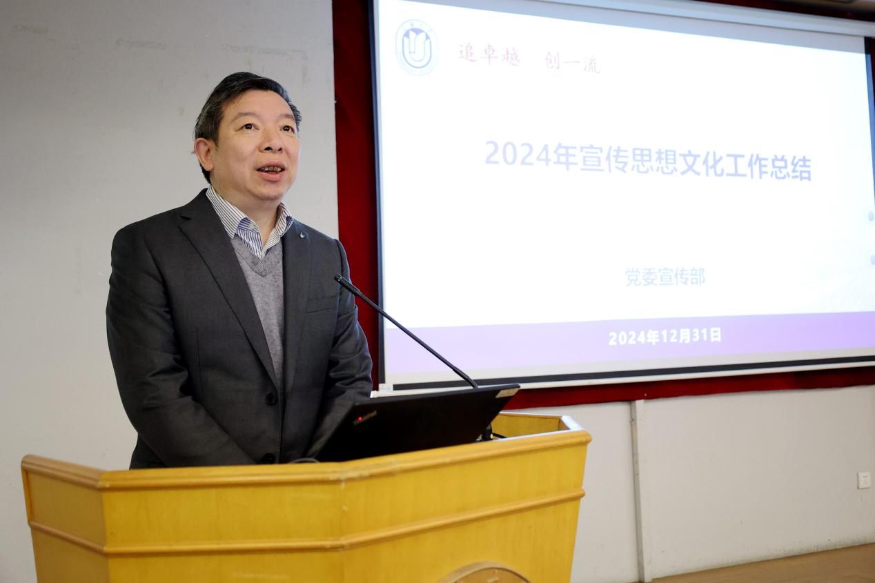 校党委常委、党委宣传部部长曾军从高举思想旗帜、落实工作责任、壮大主流舆论、弘扬社会主义核心价值观4个方面对AC米兰官方网站2024年宣传思想文化工作进行回顾和总结。