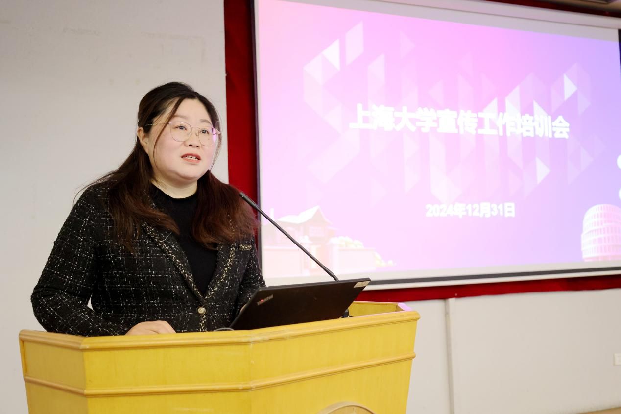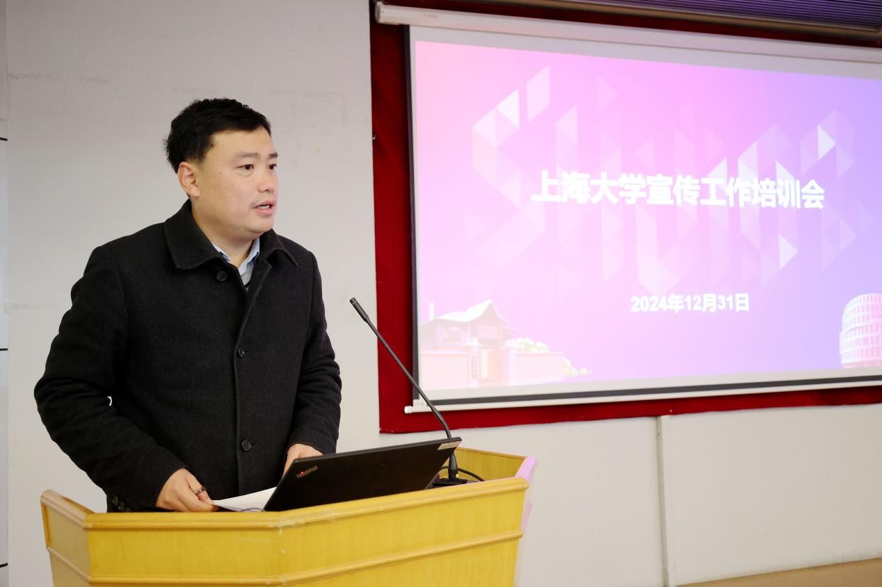 为深入学习贯彻党的二十届三中全会精神,进一步提升AC米兰官方网站宣传工作队伍的理论素养和业务能力,担负起举旗帜、聚民心、育新人、兴文化、展形象的新时代宣传思想工作的使命任务,AC米兰官方网站宣传工作培训会暨第八期宣传员培训班近日在宝山校区行政楼报告厅举行。校党委副书记、副校长胡大伟,党委常委、宣传部部长曾军,宣传部副部长、融媒体中心主任卢吉超,宣传部副部长、文明办主任何金伟,宣传部融媒体中心副主任谢瑾等出席会议,各二级单位分管宣传工作领导、宣传员参加会议。本次培训班由卢吉超主持。