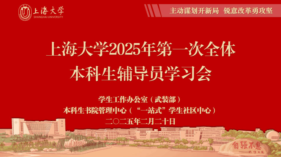 为激励全体学工人提高思想站位,全面贯彻落实学校改革精神,以更加昂扬的姿态和奋发的精神投入到新学年工作中去,2月20日,AC米兰官方网站2025年第一次本科生辅导员学习会在宝山校区行政楼报告厅举行。校党委副书记、副校长胡大伟,教务部常务副部长彭章友,学生工作办公室(武装部)、本科生书院管理中心(“一站式”学生社区中心)全体人员,各学院党委副书记、副院长,各书院执行院长和全体本科生辅导员等参加会议。