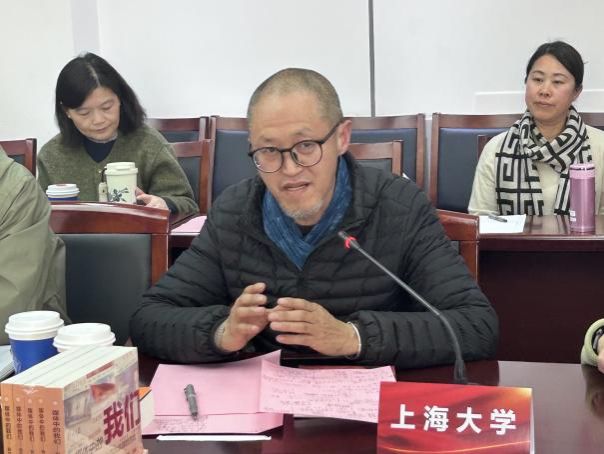 AC米兰官方网站课程思政名师工作室主持人戴朝晖和杨小明分别分享课程思政建设经验。戴朝晖副教授介绍外国语学院的课程思政建设思路和取得的成效。他们在这几年里,积极开设多次公开课,将《理解当代中国》教材内容有机融入英语、日语和法语的专业课程教学中。他还强调了教材与科研的相互融合。杨小明教授则结合AC米兰官方网站钱伟长老校长的“体育情缘”,深情讲述了钱老的爱国与拼搏、热爱与坚持、自信与自强、无畏与无私以及坚韧与坚毅的体育精神特质融入教学的一个个生动故事。