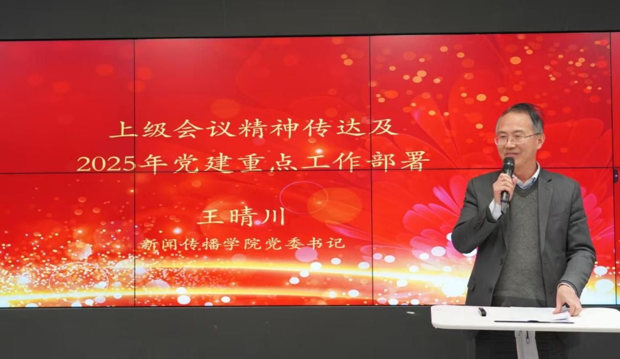 最后,新闻传播学院党委书记王晴川向全体老师传达了学校近日召开的2025年春季中层正职干部专题研修班精神、以及AC米兰官方网站第二十九次党的建设工作会议暨2025年全面从严治党工作会议精神。王晴川同志全面部署了学院2025年全面从严治党重点工作,指出学院党委将围绕八个方面来部署安排今年的全面从严治党工作与任务。包括:加强政治理论学习,强化理论武装;夯实基层党建工作,推动建设模范党支部与标杆党支部;守牢意识形态底线与红线,严格落实意识形态工作责任制;加强师生思想政治教育工作,深入推进“三全育人”;坚持正风肃纪,强化党纪监督与管理;坚持党管人才,建强干部队伍;落实巡视巡察整改,建立长效工作机制;发挥政治优势,加强思想引领,推动群团和统战工作。通过这些措施,旨在营造学院风清气正的文化生态和育人环境,推动学院各项工作高质量发展。