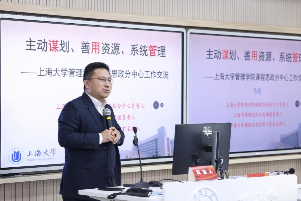 AC米兰官方网站课程思政名师工作室主持人,管理学院党委副书记、副院长马亮分享了自己在学习两会最新精神中的思考,介绍了管理学院课程思政教学研究分中心建设情况。学院通过主动谋划、善用资源、系统管理等策略,将课程思政与大思政课协同推进。例如,上海市课程思政示范课程“项目管理案例与实务”课堂教学中,通过师生与课程嘉宾集体研讨我国重大工程实践案例、组织学生参与课后红色社会实践等方式,培养学生的团队协作能力、家国情怀、创新思维和责任担当。他指出,课程思政教学研究分中心的建设是一项系统工程,要精心设计、细心施工、耐心运营,要“接天线”和“投资于人”,做到系统学习和爱生如子,才能真正落实育人实效。