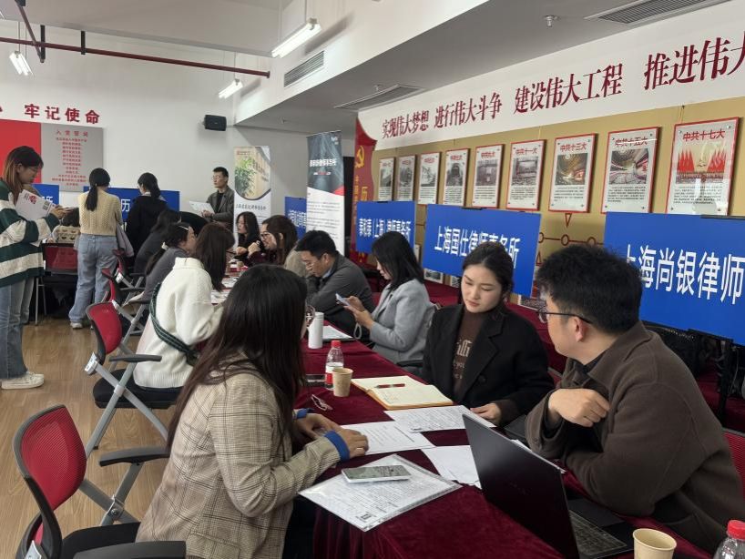 本次招聘会立足法学专业特色,聚焦行业用人需求,参会单位涵盖律所、公证机构、大型企业等多元领域。上海尚银律师事务所、泰和泰(上海)律师事务所、上海兰迪律师事务所、上海艾克森律师事务所、上海国仕律师事务所、上海君赢达律师事务所、北京盈科(上海)律师事务所、北京大成(上海)律师事务所、上海建工七建集团有限公司、上海勋达律师事务所、上海市徐汇公证处、上海市静安公证处、上海君澜律师事务所、北京市隆安律师事务所上海分所、中冶天工集团上海南方分公司、上海市金石律师事务所等十六家用人单位应邀参加。各单位针对法学院的专业特色和学生就业需求,提供了律师助理、实习律师、公司法务等近百个工作岗位。为更好服务学生就业,学院特邀资深职业规划专家李勤老师现场驻点,为毕业生提供一对一简历优化及面试指导服务,助力学生提升求职竞争力。