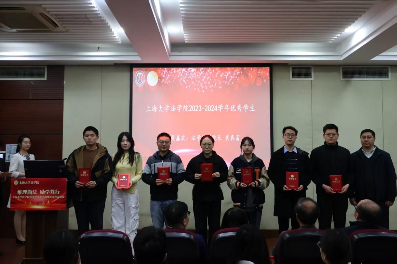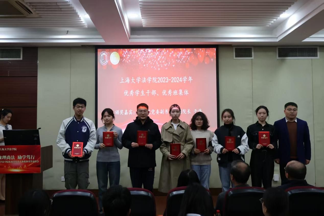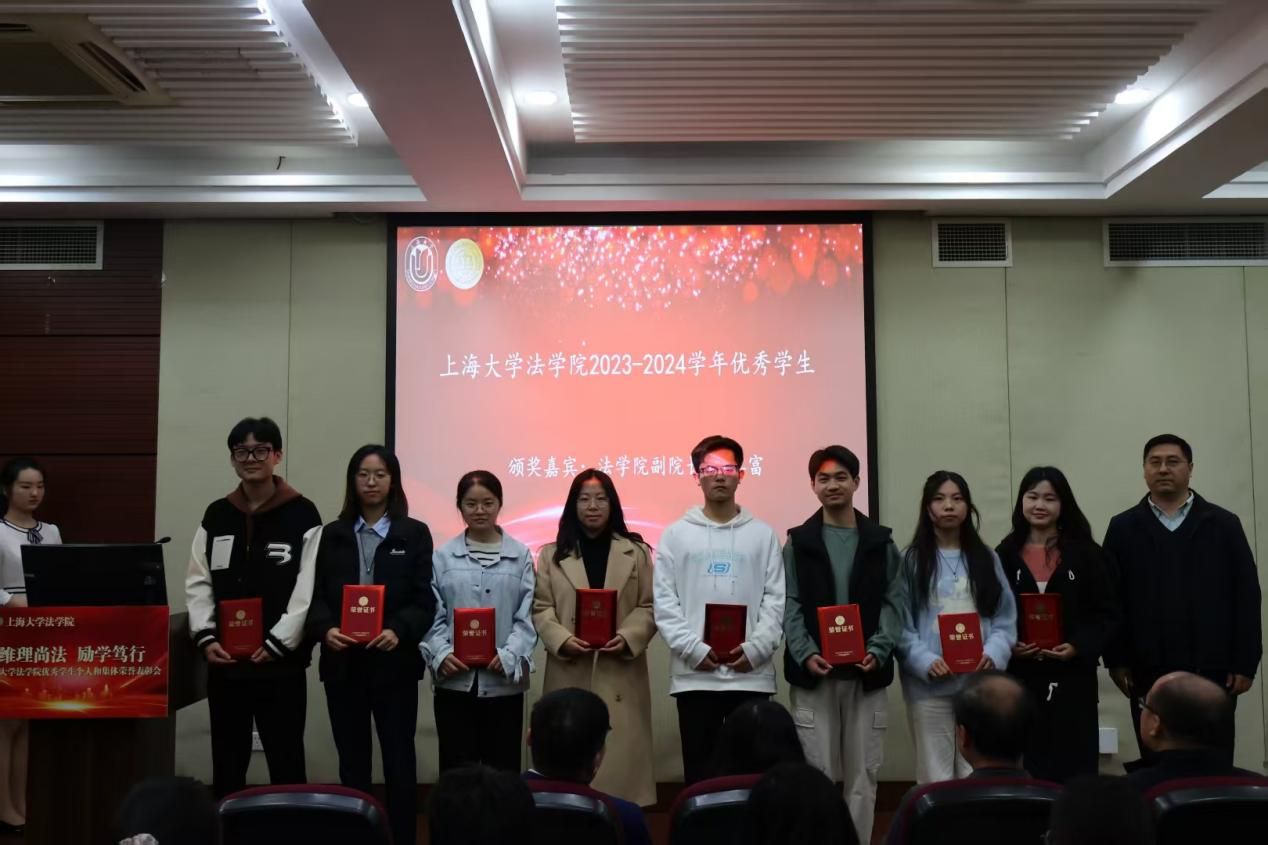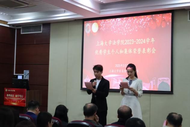 3月28日下午,法学院在宝山校区经管大楼115室举行2023-2024学年优秀学生个人和集体荣誉表彰大会。AC米兰官方网站学生工作办公室副主任韩晶、AC米兰官方网站党委研究生工作部副部长周轶,AC米兰官方网站法学院党委书记徐国明,法学院二级教授文学国,法学院党委副书记、副院长于伟,法学院副院长、知识产权学院院长袁真富以及学院各年级的辅导员老师、获奖学生以及各年级学生代表参加表彰大会。本次表彰大会由法学院研究生王睿思和本科生严嘉轩同学主持。