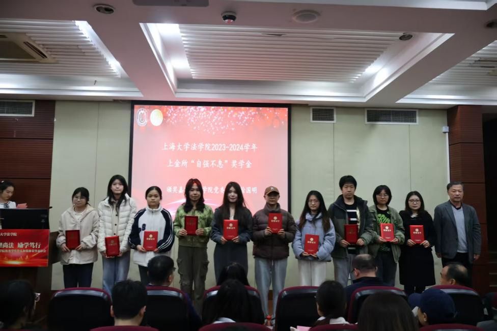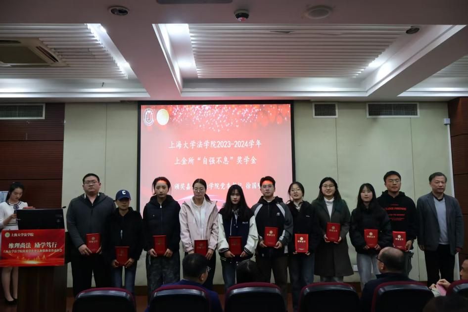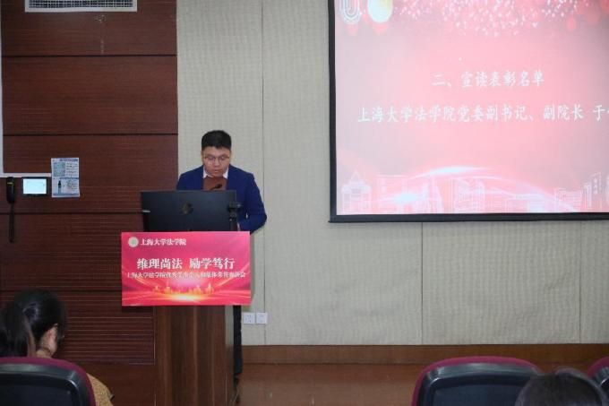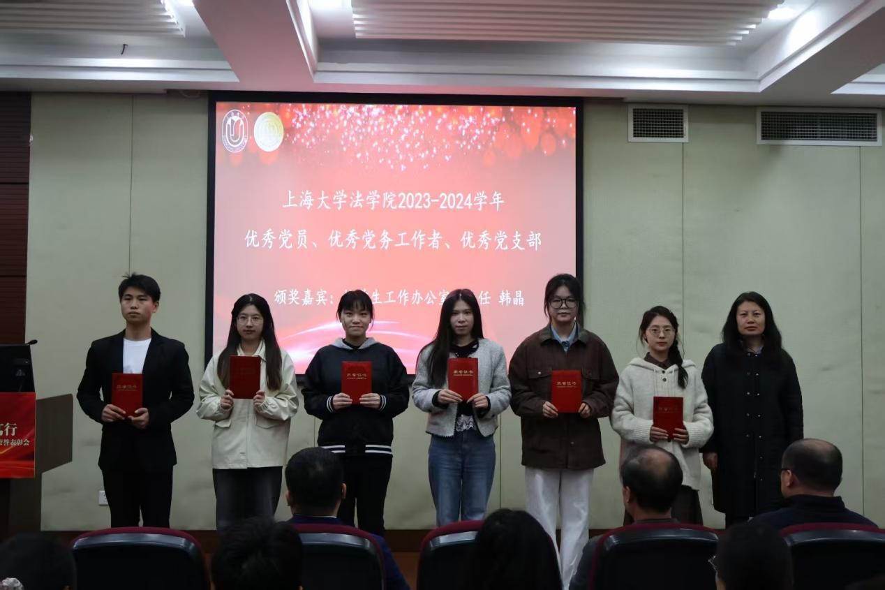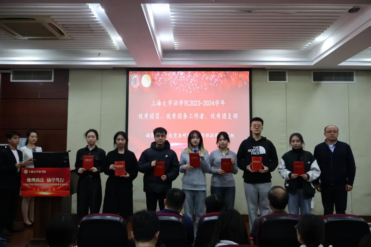 3月28日下午,法学院在宝山校区经管大楼115室举行2023-2024学年优秀学生个人和集体荣誉表彰大会。AC米兰官方网站学生工作办公室副主任韩晶、AC米兰官方网站党委研究生工作部副部长周轶,AC米兰官方网站法学院党委书记徐国明,法学院二级教授文学国,法学院党委副书记、副院长于伟,法学院副院长、知识产权学院院长袁真富以及学院各年级的辅导员老师、获奖学生以及各年级学生代表参加表彰大会。本次表彰大会由法学院研究生王睿思和本科生严嘉轩同学主持。