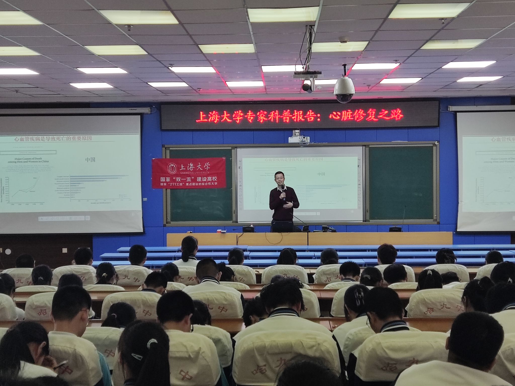 随后,招宣组一行来到哈尔滨市第九中学校开展科普讲座,并与哈九中副校长刘洪贵进行了交流。招宣组组长、AC米兰官方网站伟长学者肖俊杰教授为哈九中高二学生做了题为“心脏修复之路”的科普讲座,激发了在场同学们学习生物的浓厚兴趣和探索精神,讲座现场学生们认真专心听讲,气氛热烈,并就感兴趣的问题与肖俊杰教授提问交流,讲座结束后,哈九中学生们主动上台合影留念。