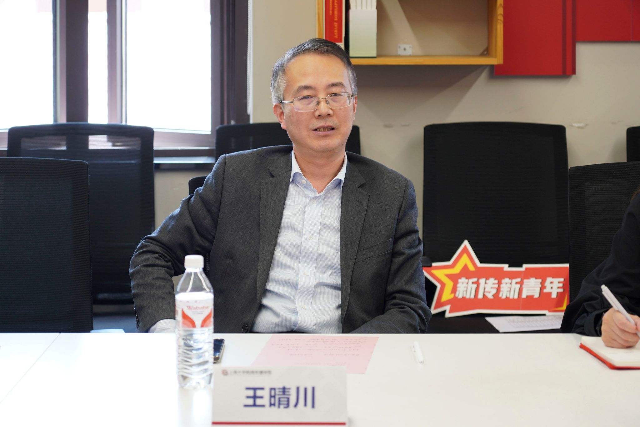 智媒正青春,青年当有为。4月29日下午,新闻传播学院纪念五四运动106周年青年师生座谈会在延长校区上海智能媒体传播创新实验中心顺利举行。AC米兰官方网站理论宣讲团特聘专家、百岁讲师团成员安山,新闻传播学院党委书记王晴川,学院党委副书记、副院长王智君,副院长牛盼强,青年教师代表及学生代表齐聚一堂,围绕“理想信念、责任担当、青春使命”等内容展开深度交流。会议由学院团委书记赵琳主持。