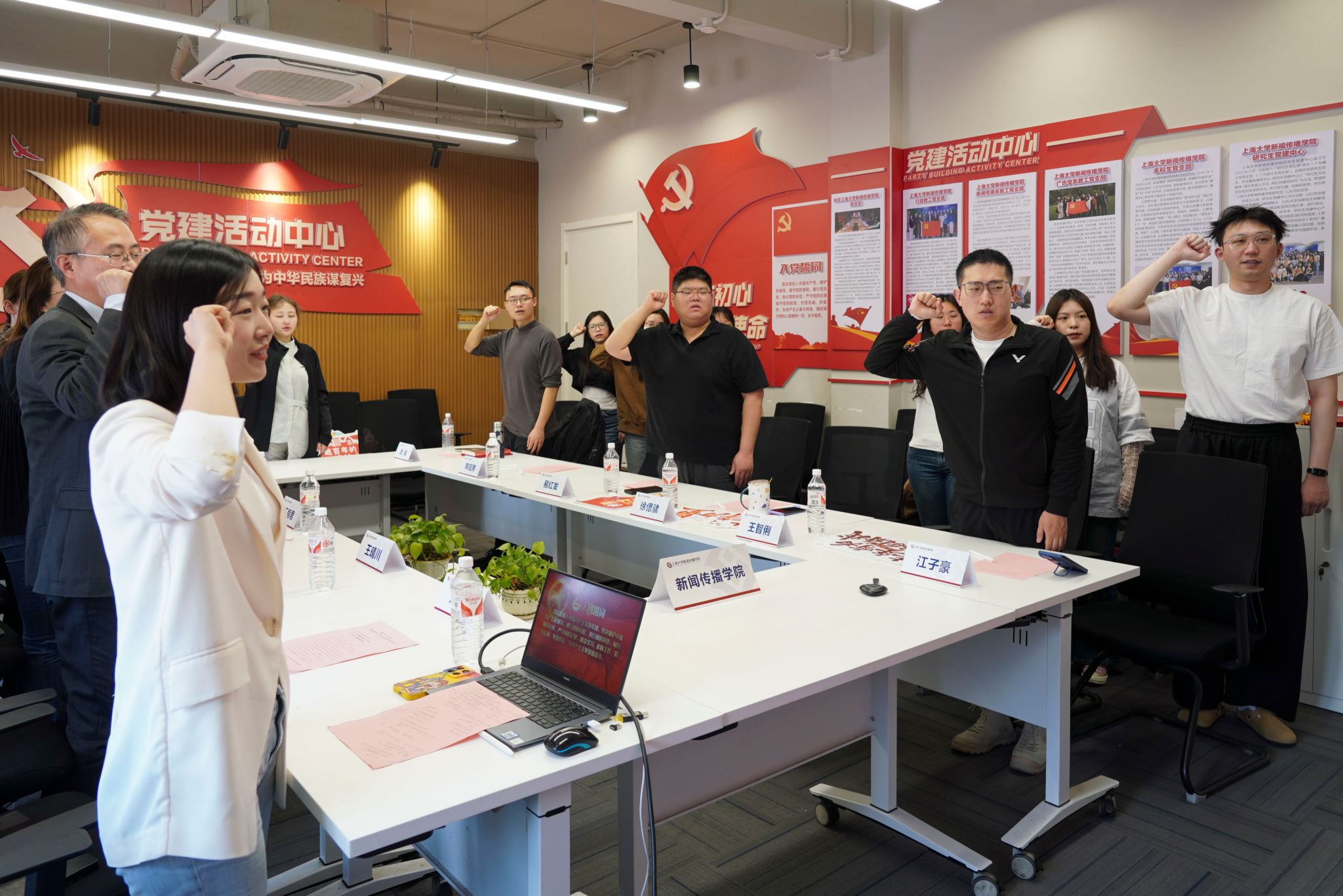 在徐偲骕老师的带领下,全体师生重温入团誓词,铿锵誓言再次唤起青春的热血与担当。