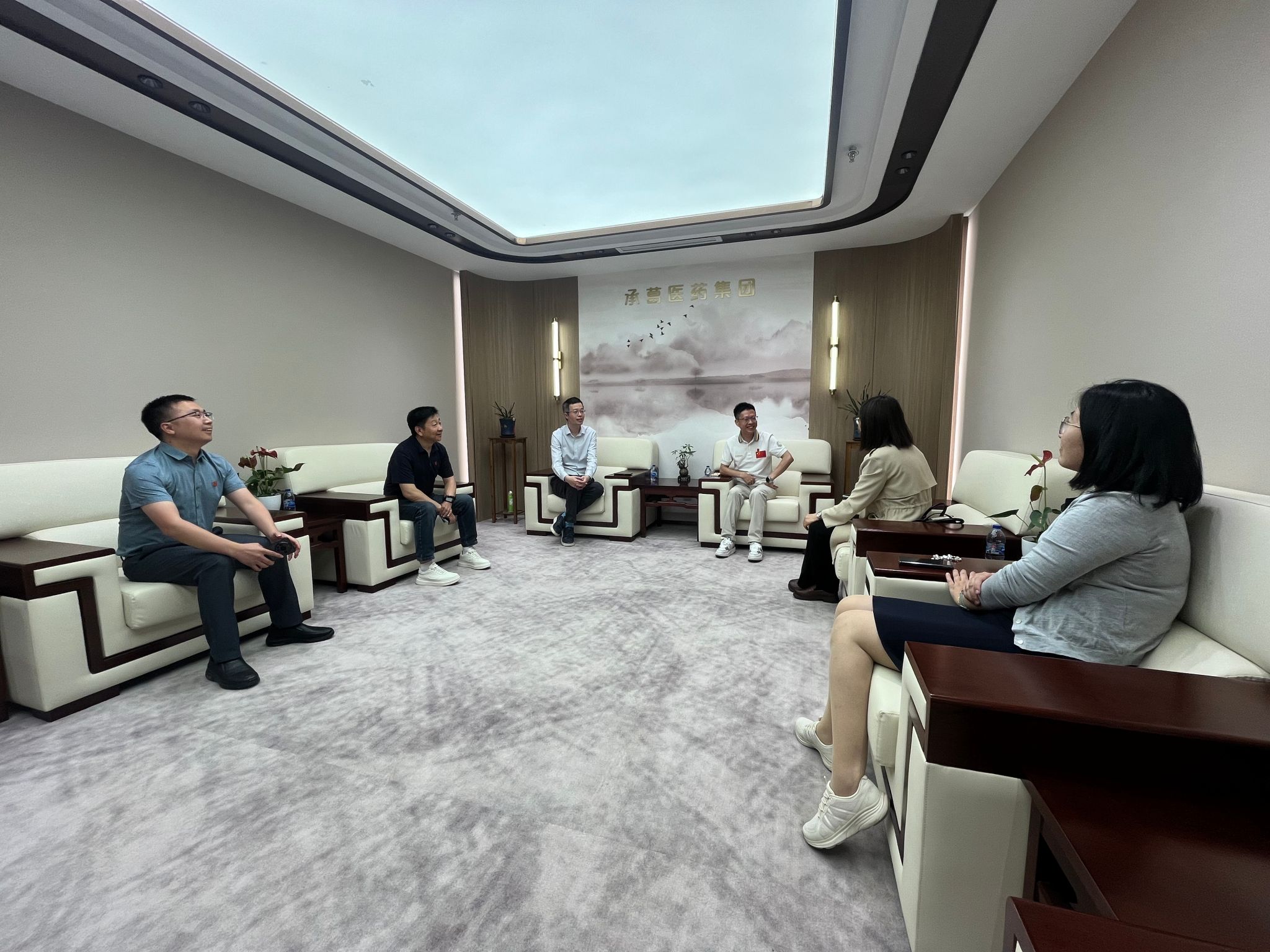 5月6日下午,生命学院党委副书记、执行院长肖俊杰,党委副书记、副院长朱晓青,副院长赵婧、代理办公室主任陆晨一行,前往坐落于南大智慧城的承葛医药集团总部,开展访企拓岗活动。承葛医药集团创始人、董事长肖传兴博士,首席技术官张帮周,首席人才官孟然,上海临港南大智慧城有限公司总经理助理赵静,上海市工业区开发总公司(有限)产业发展促进中心四部总监杨伟等出席并座谈交流。