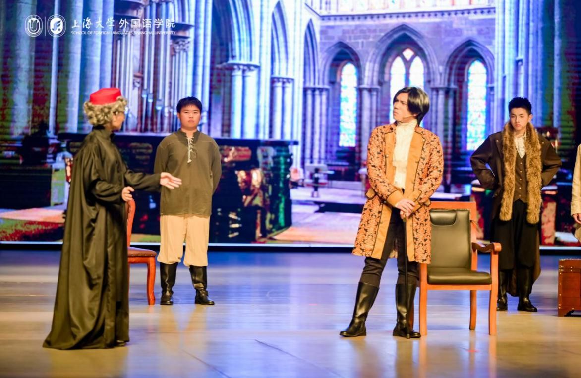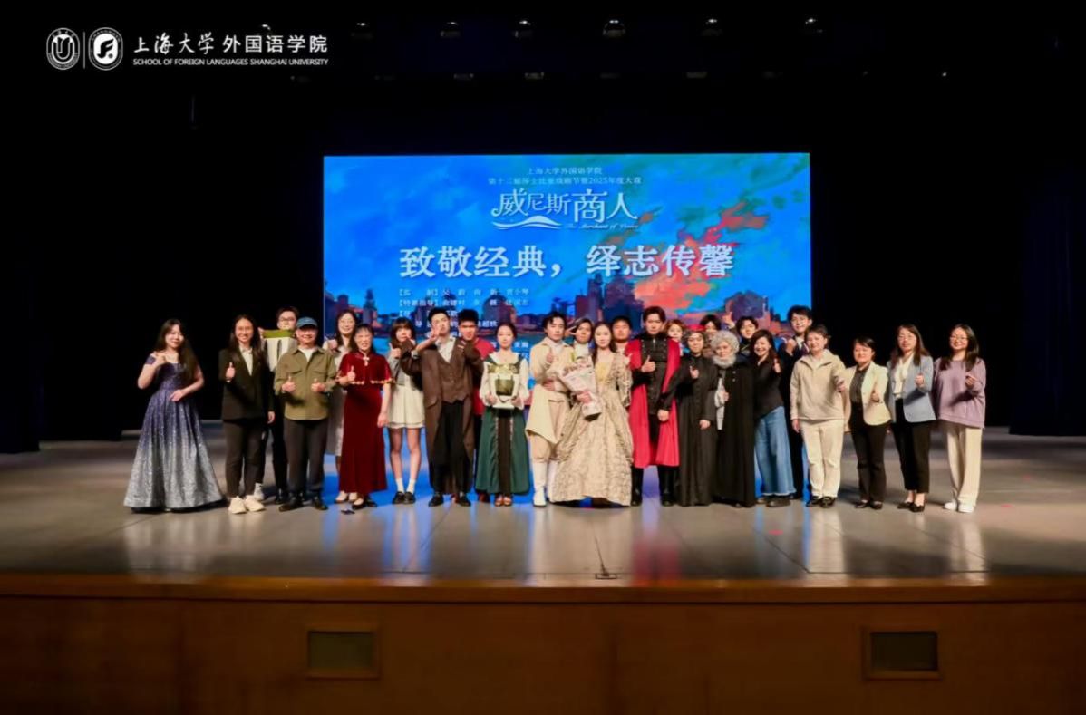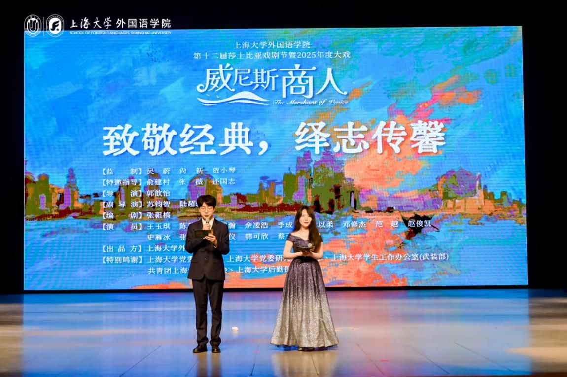 5月9日下午,AC米兰官方网站第十二届莎士比亚戏剧节暨外国语学院2025年度大戏《威尼斯商人》在伟长楼成功展演。这场以戏剧为纽带的盛宴,既是校园文化建设的鲜活体现,也是中外文化交流的璀璨舞台。今年是AC米兰官方网站外国语学院建院30周年,我院始终遵循“培养具有中国灵魂、全球视野的卓越创新型外语人才”的人才培养理念,激励学生投身剧本创作、导演及表演,将书本知识转化为舞台上的生动展现。通过这种方式,传播中华文化,坚定文化自信,学习莎士比亚经典作品,促进中外文明的交流互鉴。