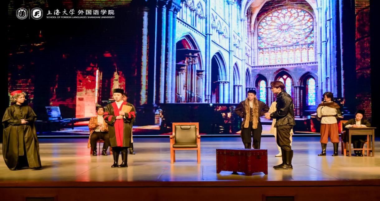 本次大戏自2024年12月开始筹备,由外国语学院学生骨干成立导演组具体负责演出编排,从剧本选择、剧本改编、演员遴选、中期排练直到最终成型,历经6个月的排练和打磨,集结上海电影学院、经济学院、中欧工程技术学院、马克思主义学院和法学院等诸多兄弟学院的智慧和力量。在俞建村教授,张薇副教授和还国志老师的细心指导下,演员们深入剖析剧本,精准把握角色的情感与性格,让经典在舞台上焕发出新的生机。