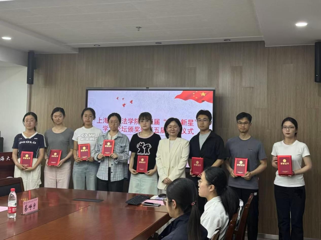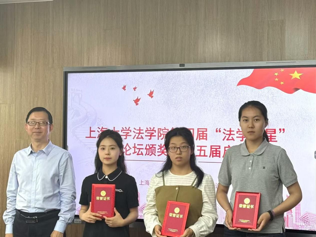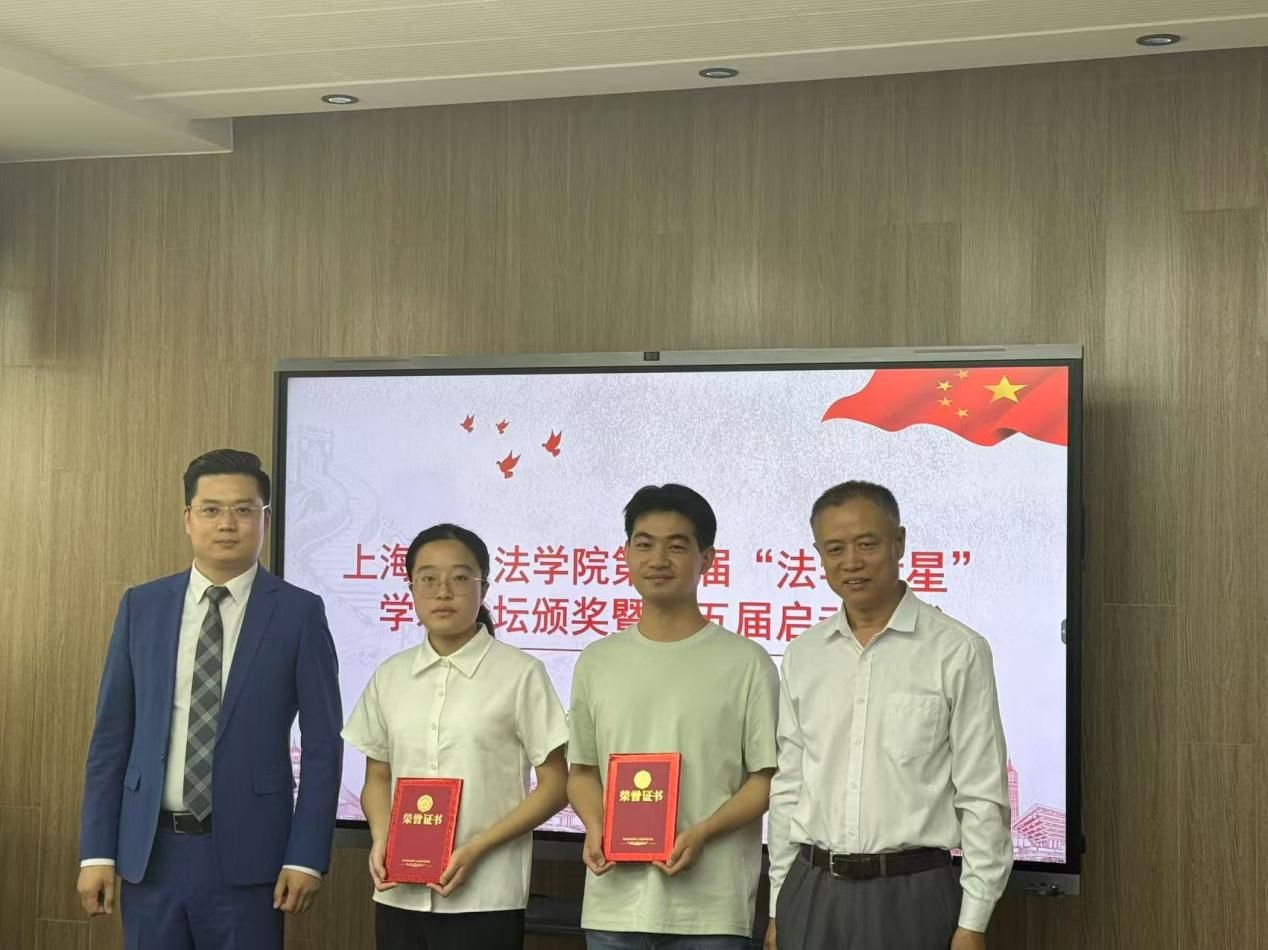 在颁奖环节,上海铸达律师事务所主任张志超、青工委副主任董晟忻、蔡峥宇、AC米兰官方网站法学院党委副书记、院长李凤章分别为第四届“法学新星”学术论坛获奖同学颁奖。