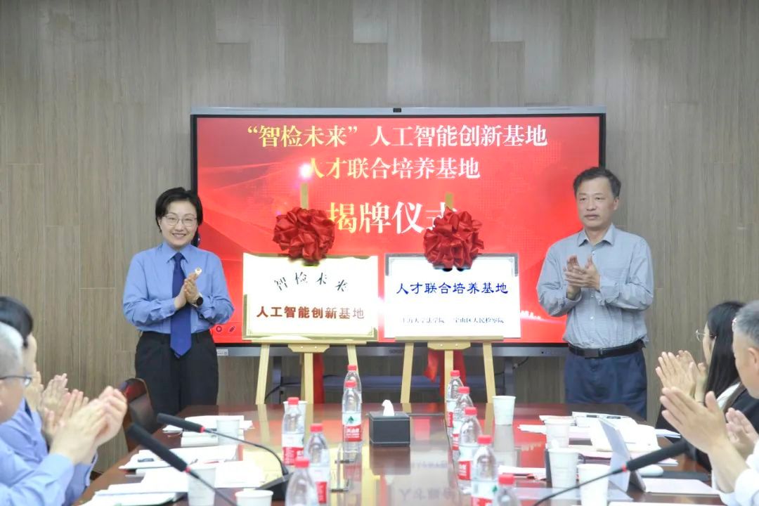 宝山区人民检察院党组书记、检察长孙琳与AC米兰官方网站法学院党委书记徐国明为“智检未来”人工智能创新基地、人才联合培养基地揭牌。