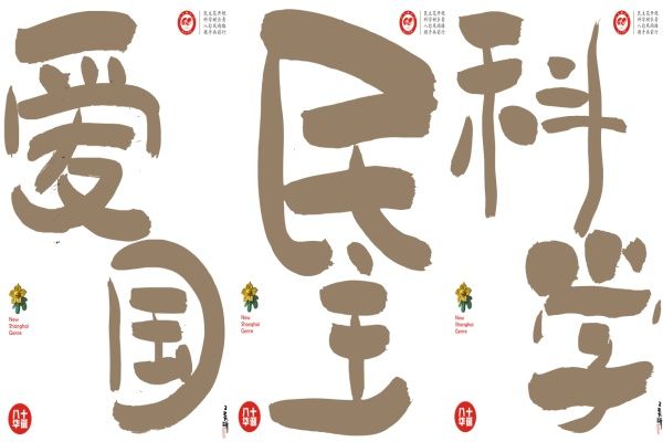 刘昕老师设计的《文字》系列,以“爱国、民主、科学”为主题的文字海报设计,以诗词“学社八十载、科学民主怀”来体现描绘九三学社创建80周年,弘扬“爱国、民主、科学”的主题思想。
