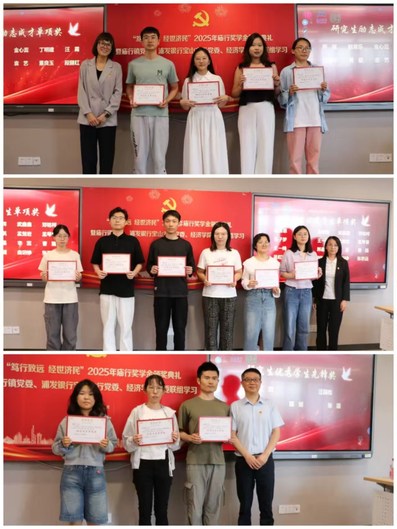 通过此次颁奖典礼和联组学习,庙行镇党委、浦发银行宝山支行党委和经济学院党委之间的合作进一步加强,为进一步深化校企合作、校地合作,服务一流人才培养和地方经济高质量发展进一步凝聚了共识和力量。