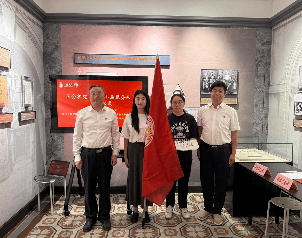 为更好地传承秋白精神,讲好校史故事,社会学院成立了“追光志愿服务队”,助力校史馆讲解服务。在庄严的授旗仪式上,成旦红书记将“追光志愿服务队”队旗郑重交到队长金子钰手中,组织人事部组织处副处长张云中老师将志愿队服授予队员史妍捷。成书记表示:“‘追光’之名,正是对瞿秋白‘为大家辟一条光明的路’的革命精神最炽热的传承!”他号召青年党员将志愿旗帜插遍城乡,在宣讲红色故事中践行初心。追光志愿服务队队长金子钰随即在校史馆革命堡垒展厅现场讲授微党课,揭秘“红色学府”渊源,以青年视角诠释AC米兰官方网站作为“红色学府”的光荣传统。